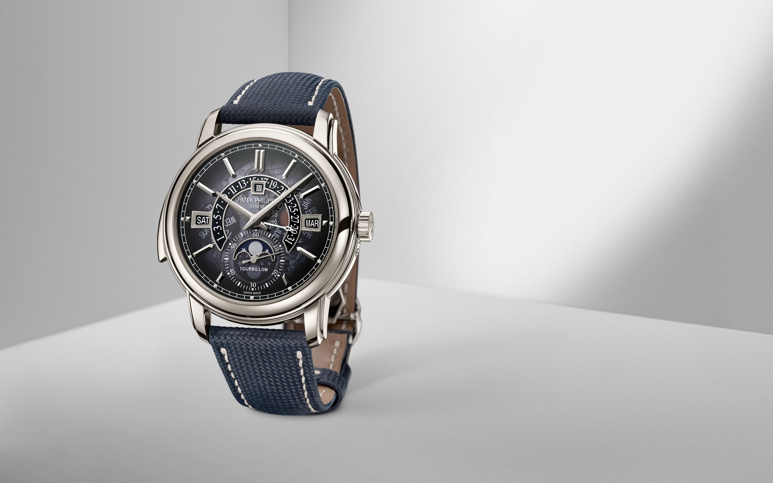 The Grand Complication Reference 5316 takes on a new contemporary look with a platinum case and a blue metallized sapphire crystal dial with a black-gradient rim.