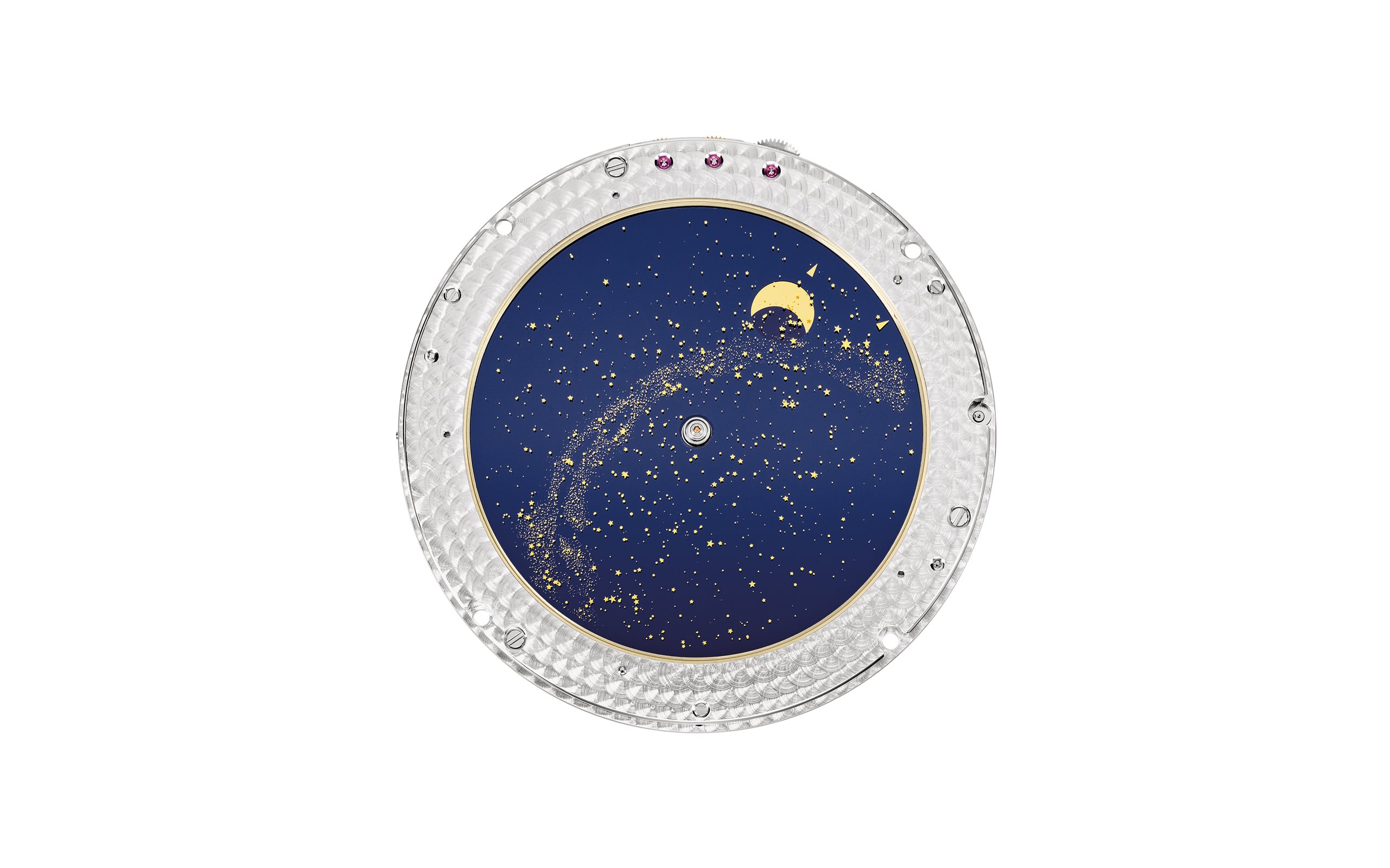 Highlighting Patek Philippe’s great tradition of astronomical watches, the Celestial devotes its dial to a rotating chart of the heavenly bodies. At any time, its owner may admire the exact configuration of the nocturnal sky in the northern hemisphere, with the apparent movement of the stars and the phases and orbit of the moon. Two skeletonized hands point to the hours and minutes of mean solar time. An Ellipse, deposited on the underside of the sapphire glass, frames the portion of the sky visible from Geneva and all other cities located at the same latitude.