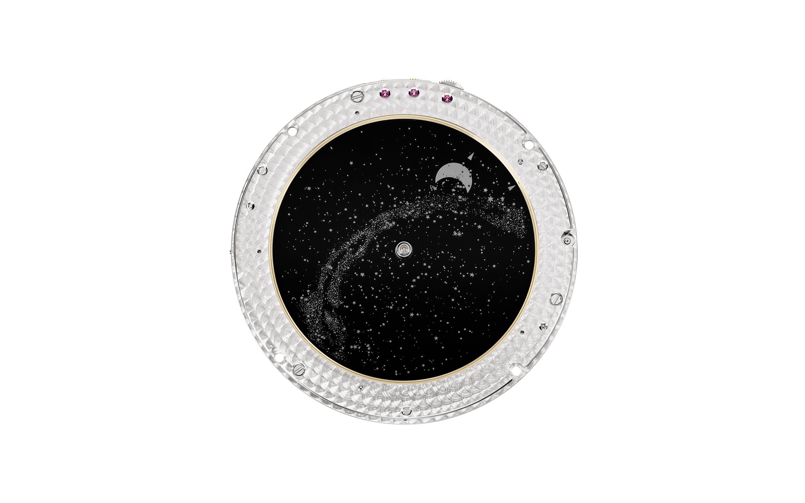 Highlighting Patek Philippe’s great tradition of astronomical watches, the Celestial devotes its dial to a rotating chart of the heavenly bodies. At any time, its owner may admire the exact configuration of the nocturnal sky in the northern hemisphere, with the apparent movement of the stars and the phases and orbit of the moon. Two skeletonized hands point to the hours and minutes of mean solar time. An Ellipse, deposited on the underside of the sapphire glass, frames the portion of the sky visible from Geneva and all other cities located at the same latitude.