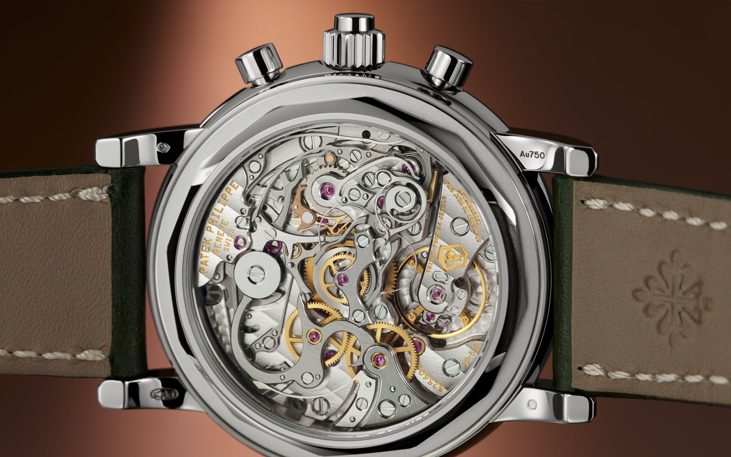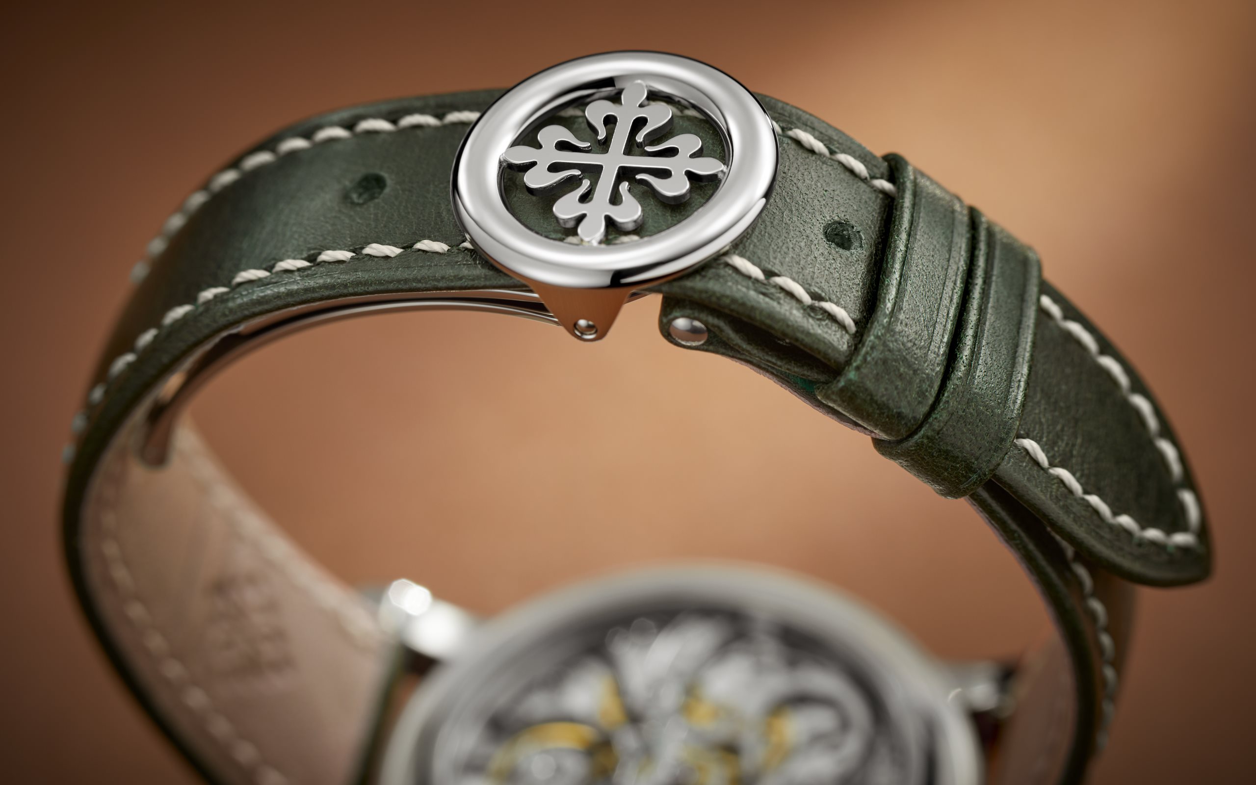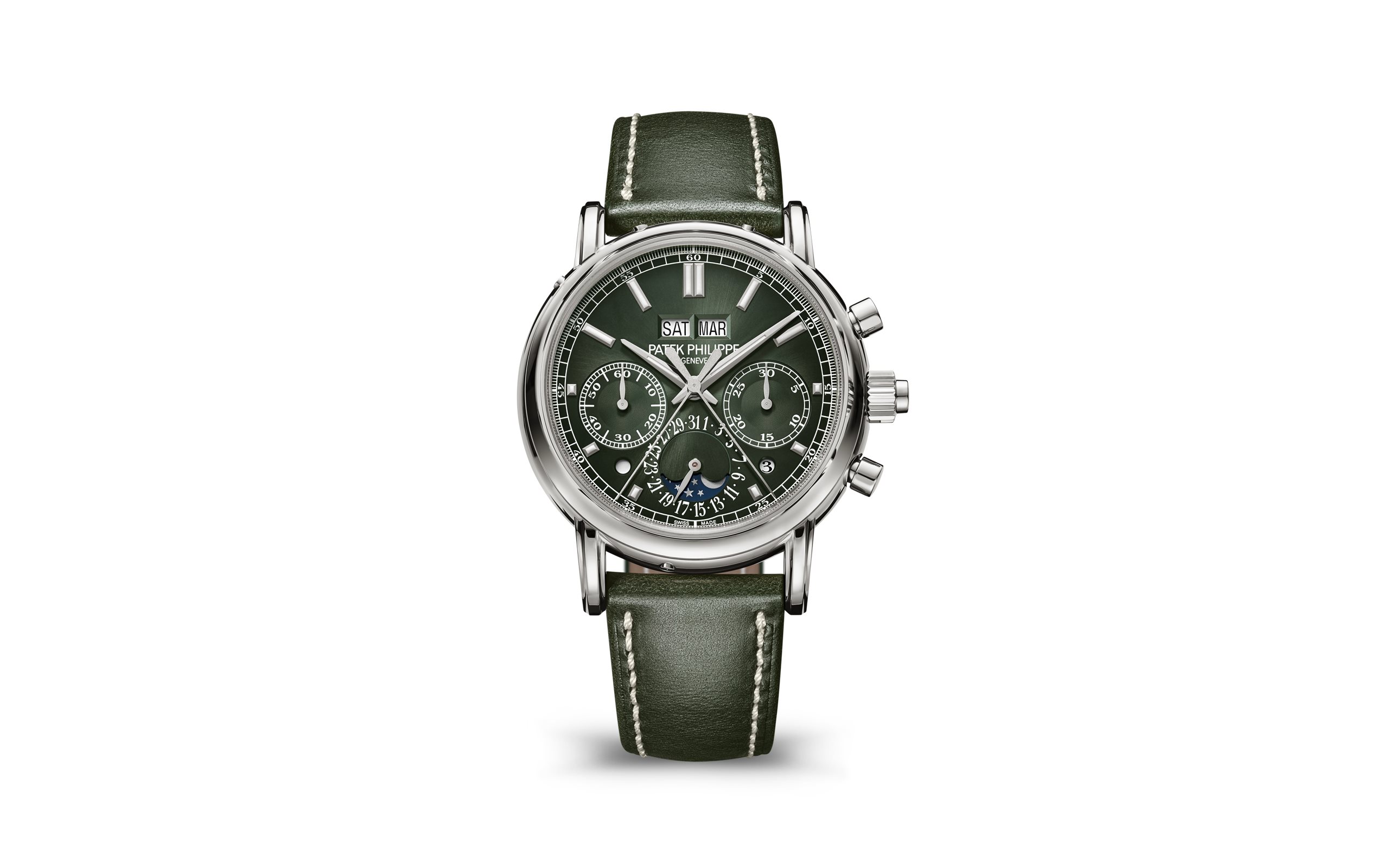 Patek Philippe has reworked one of its grand classics, endowing it with a white-gold case and an olive green sunburst dial with a black gradation to the periphery. It is a chord of colors that is both contemporary and timeless.