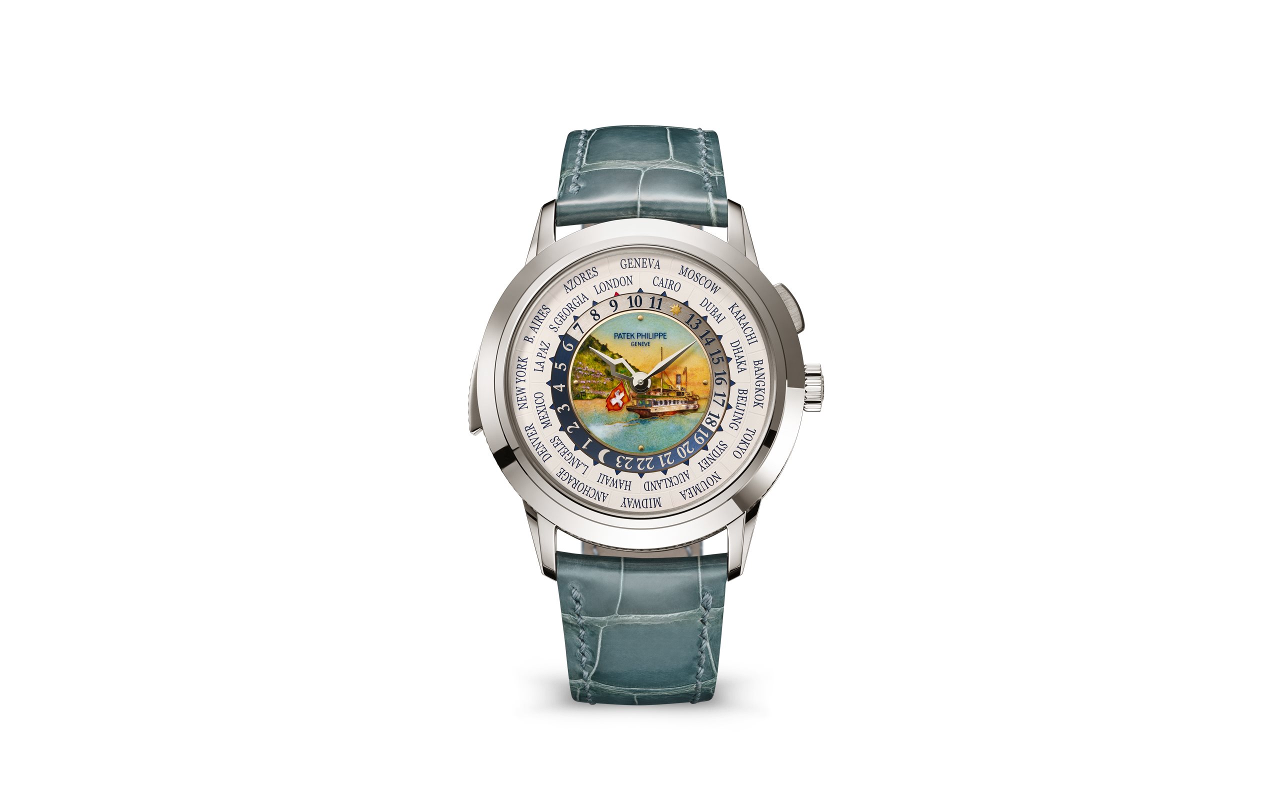 Patek Philippe has attired the World Time Minute Repeater Reference 5531 in white gold. The dial center is adorned with a new cloisonné Grand Feu enamel motif depicting one of the famous steamships of the Belle Époque fleet still sailing on Lake Geneva today. The result is an entirely hand-made miniature Rare Handcrafts masterpiece.
