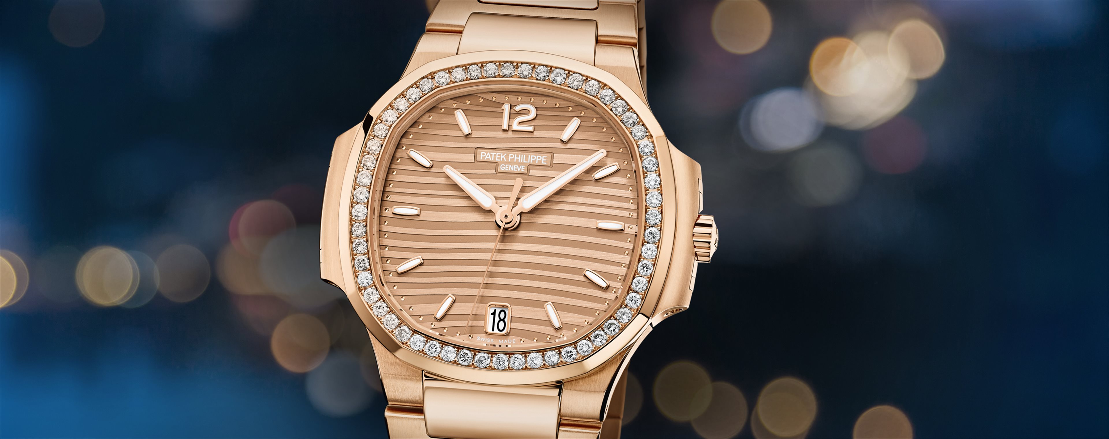 With the rounded octagonal shape of its bezel, the ingenious porthole construction of its case, and its horizontally embossed dial, the Nautilus has epitomized the elegant sports watch since 1976. Forty years later, it comprises a splendid collection of models for men and women. In steel, rose gold, white gold or two-tone combinations they accompany the most active lifestyles with incomparable class.