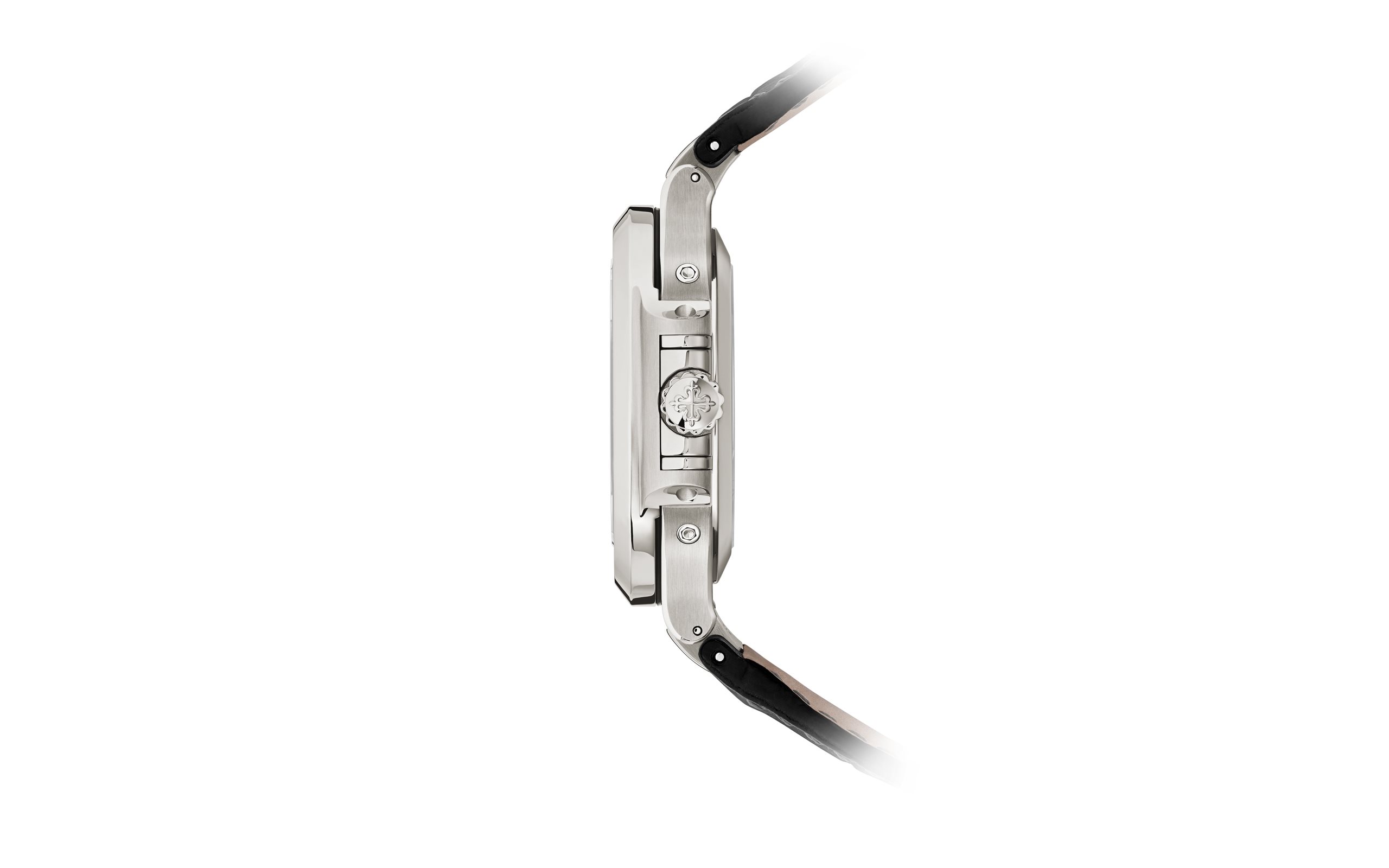 - Alligator strap with rectangular scales, hand-stitched, matt black