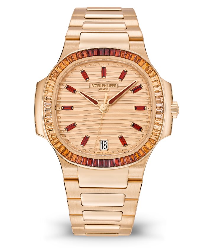 With the rounded octagonal shape of its bezel, the ingenious porthole construction of its case, and its horizontally embossed dial, the Nautilus has epitomized the elegant sports watch since 1976. Forty years later, it comprises a splendid collection of models for men and women. In steel, rose gold, white gold or two-tone combinations they accompany the most active lifestyles with incomparable class.