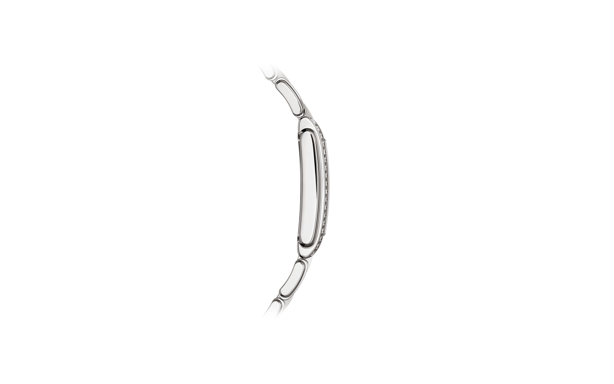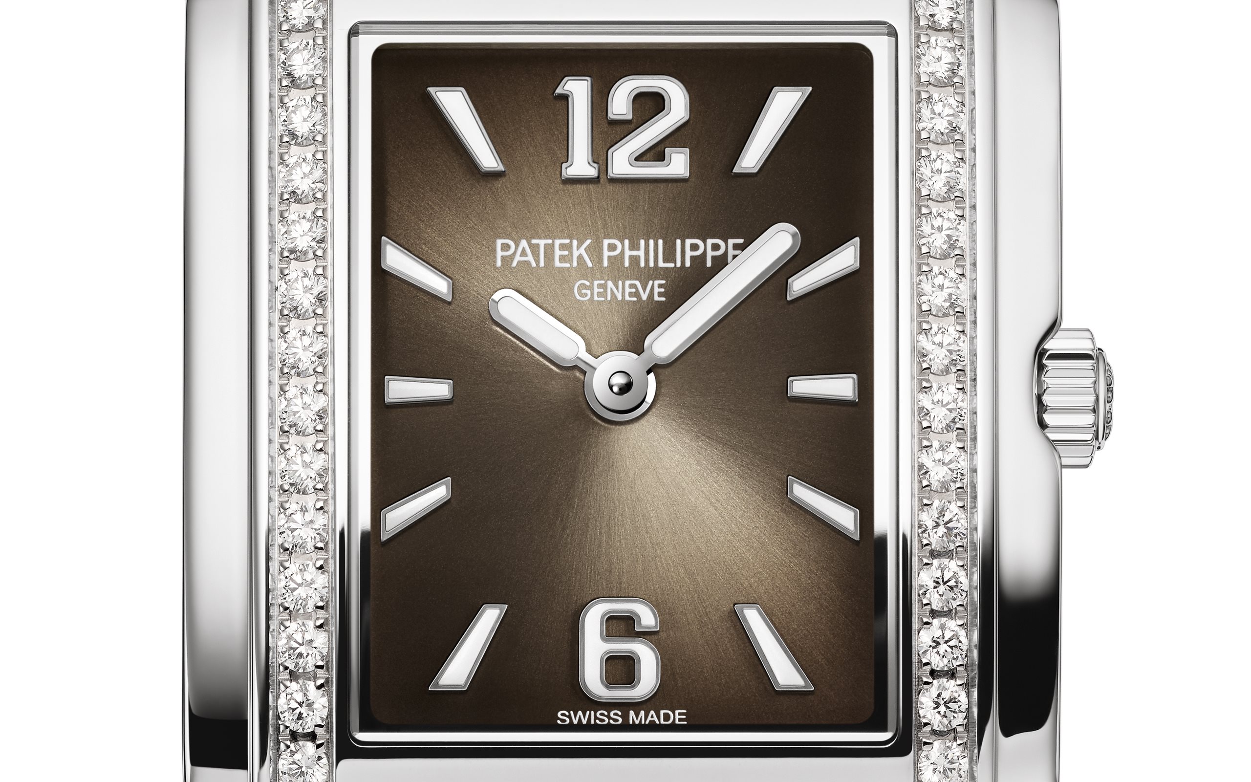 The medium-format Twenty~4 manchette quartz watch is infused with fresh momentum and comes in two new versions: the former Roman numerals are replaced with applied Arabic numerals in gold and trapeze-shaped gold markers take the place of the diamond markers. With its timeless and yet contemporary face, this watch is a companion for all of the hours of an active life. This steel model is available with a blue or gray sunburst dial. The crown is decorated with the Calatrava cross, Patek Philippe’s trademark emblem.