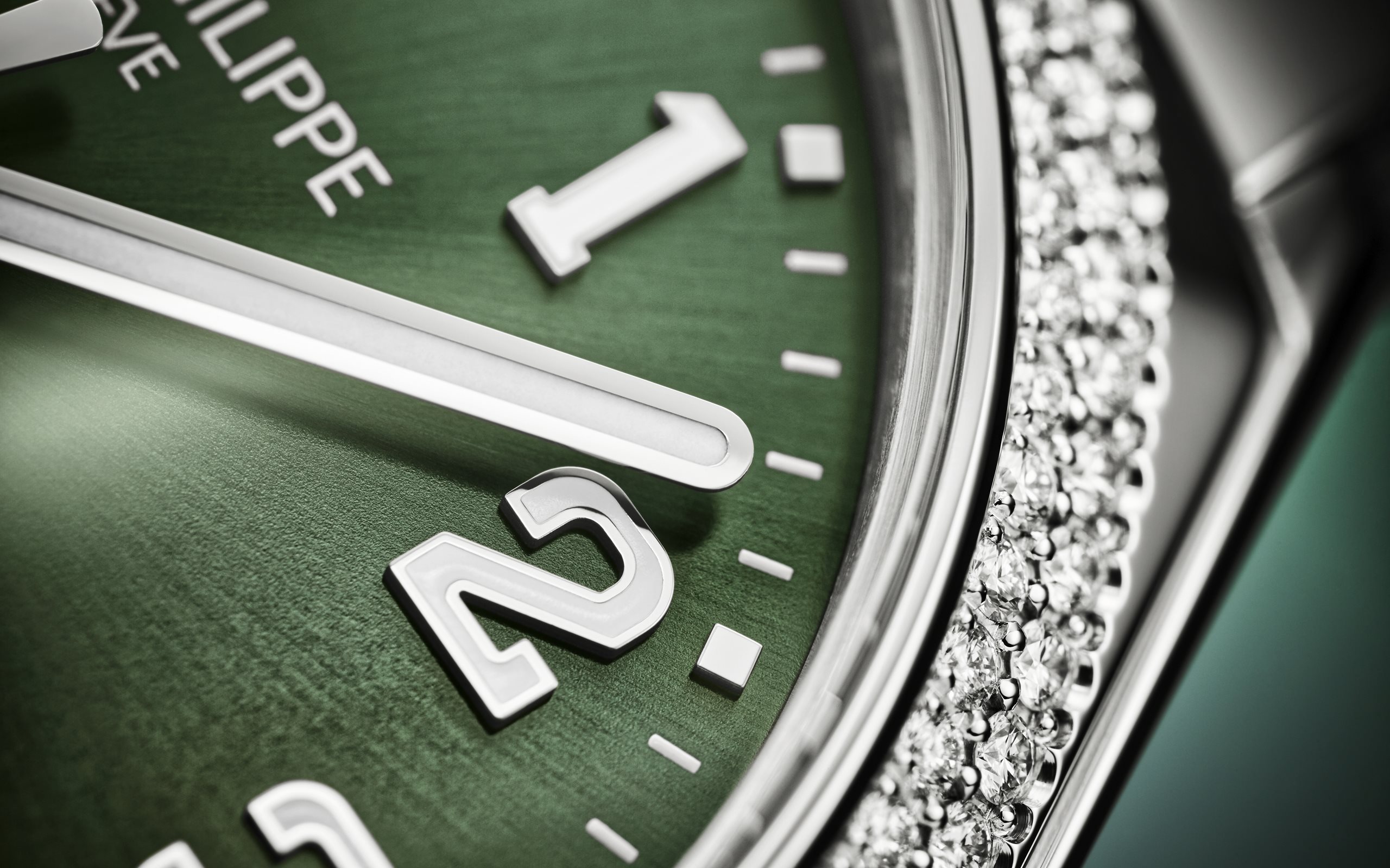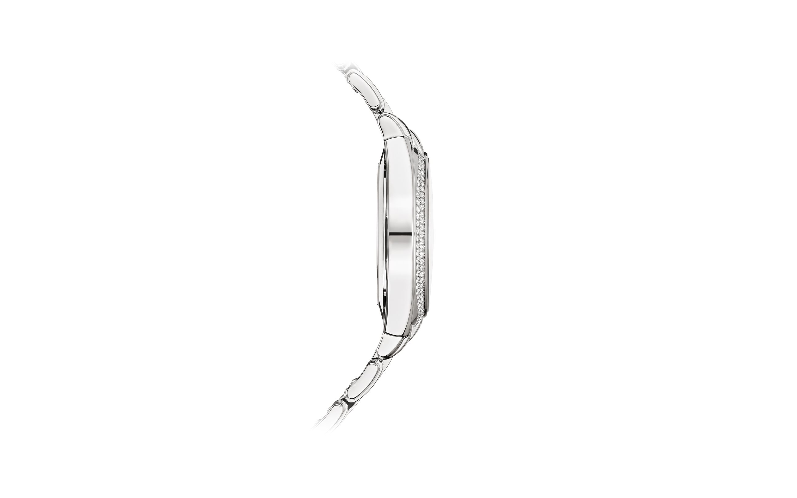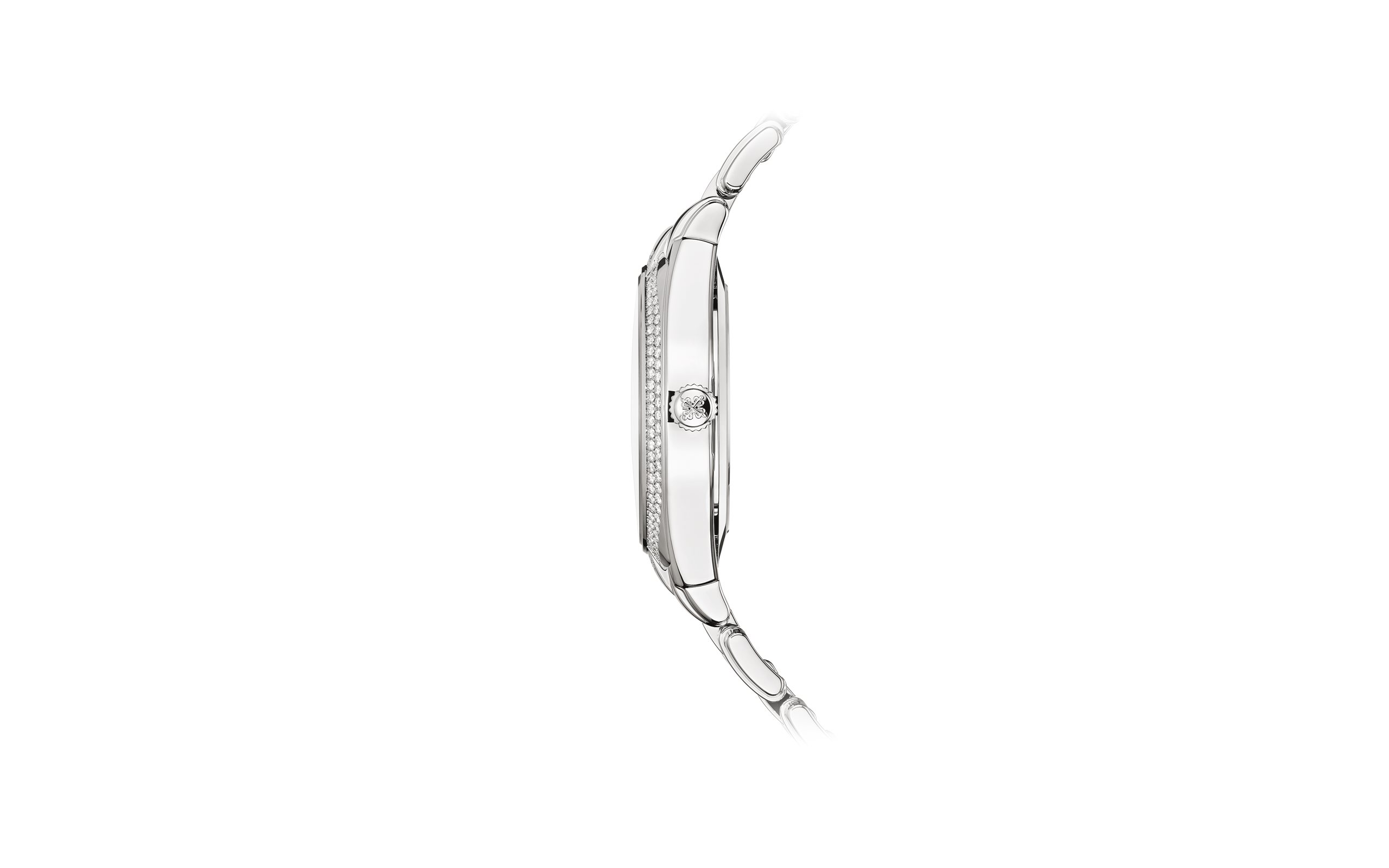 Created as a stylish companion sharing the lives of modern active women, the Twenty~4 Automatic appears in a new steel version whose elegant dial is graced with an original and refined shade of olive green, highlighted by a sunburst finish. The bezel is enhanced by two staggered rows of diamonds set according to the exclusive dentelle technique. The movement’s sophisticated architecture and exquisite finishing are revealed through a transparent sapphire case back. The entirely hand-polished steel bracelet is fitted with a patented fold-over clasp secured with four independent catches.