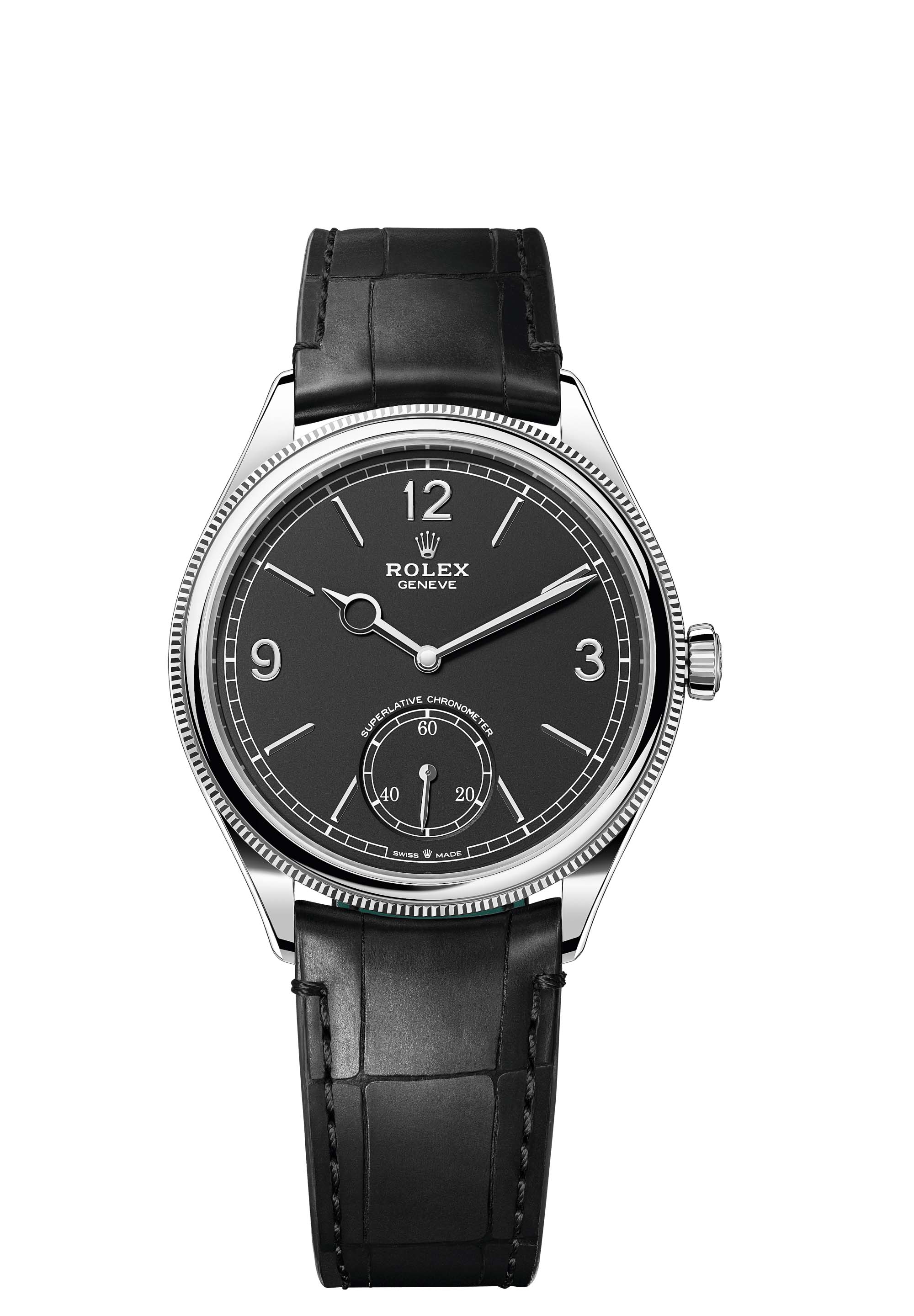 The Perpetual 1908 is equipped with calibre 7140, a movement wholly developed and manufactured by Rolex, unveiled this year. A distillation of technology, this self-winding mechanical movement delivers outstanding performance in terms of precision, power reserve, convenience and reliability. Calibre 7140 demonstrates carefully finished aesthetics, notably on the bridges which feature Rolex Côtes de Genève – a decoration that differs from traditional Côtes de Genève for the slight polished groove between each band.