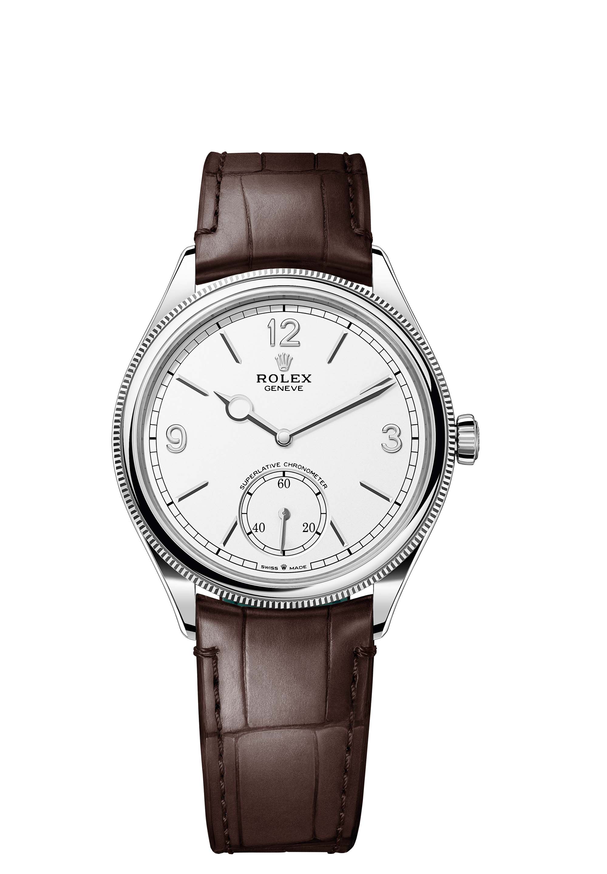 The Perpetual 1908 is equipped with calibre 7140, a movement wholly developed and manufactured by Rolex, unveiled this year. A distillation of technology, this self-winding mechanical movement delivers outstanding performance in terms of precision, power reserve, convenience and reliability. Calibre 7140 demonstrates carefully finished aesthetics, notably on the bridges which feature Rolex Côtes de Genève – a decoration that differs from traditional Côtes de Genève for the slight polished groove between each band.