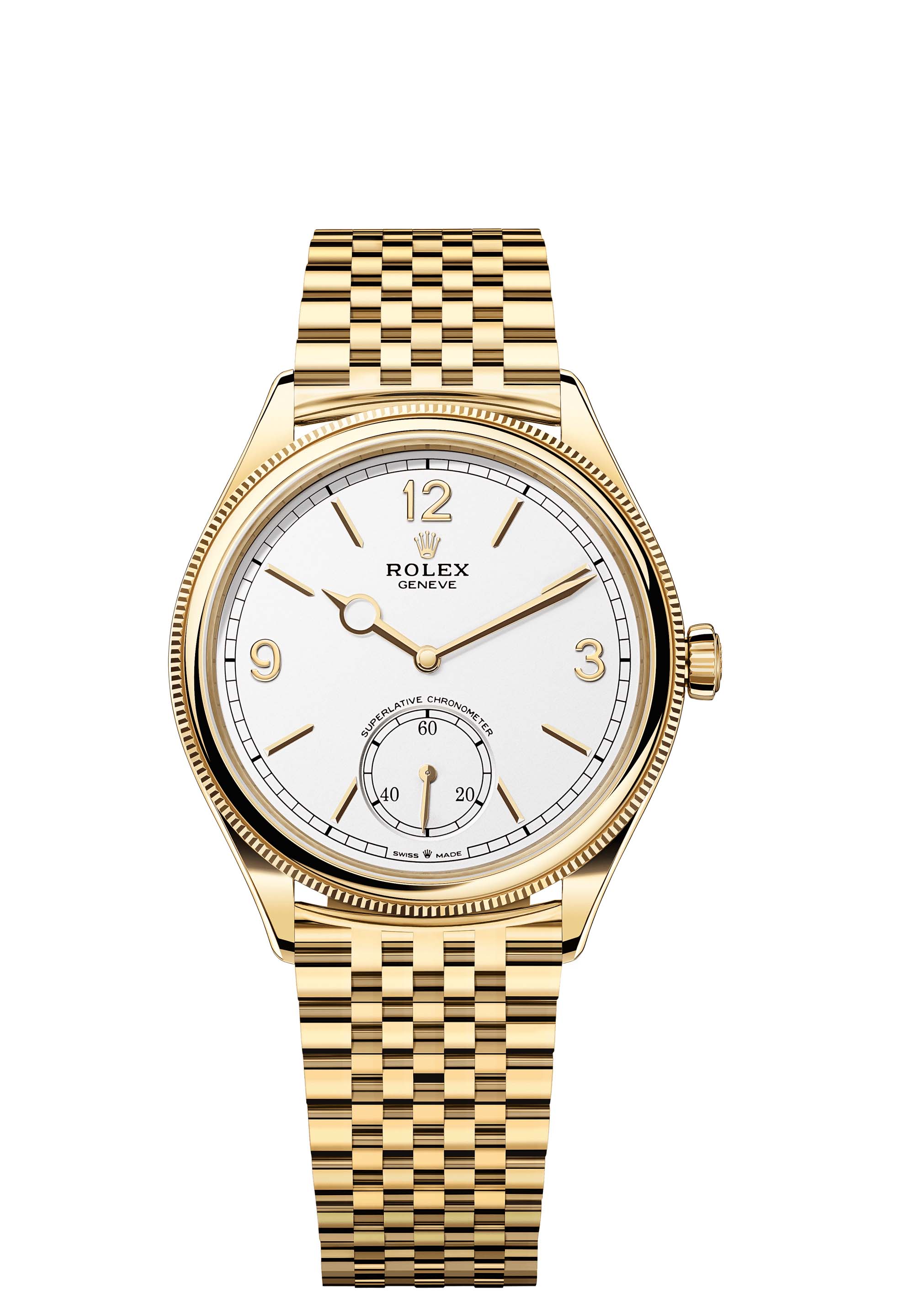 The Perpetual 1908 is equipped with calibre 7140, a movement wholly developed and manufactured by Rolex, unveiled this year. A distillation of technology, this self-winding mechanical movement delivers outstanding performance in terms of precision, power reserve, convenience and reliability. Calibre 7140 demonstrates carefully finished aesthetics, notably on the bridges which feature Rolex Côtes de Genève – a decoration that differs from traditional Côtes de Genève for the slight polished groove between each band.