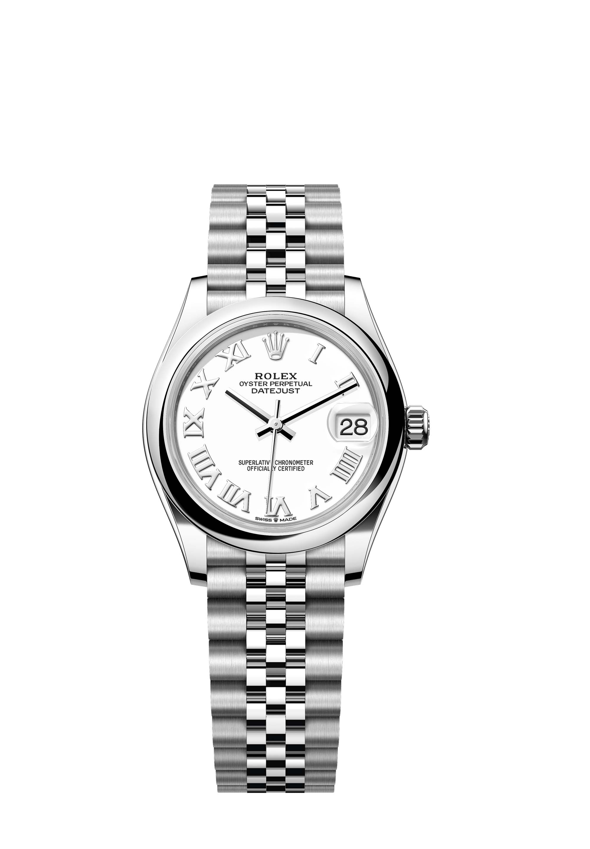 This Oyster Perpetual Datejust 31 in Oystersteel features a white dial and a Jubilee bracelet.