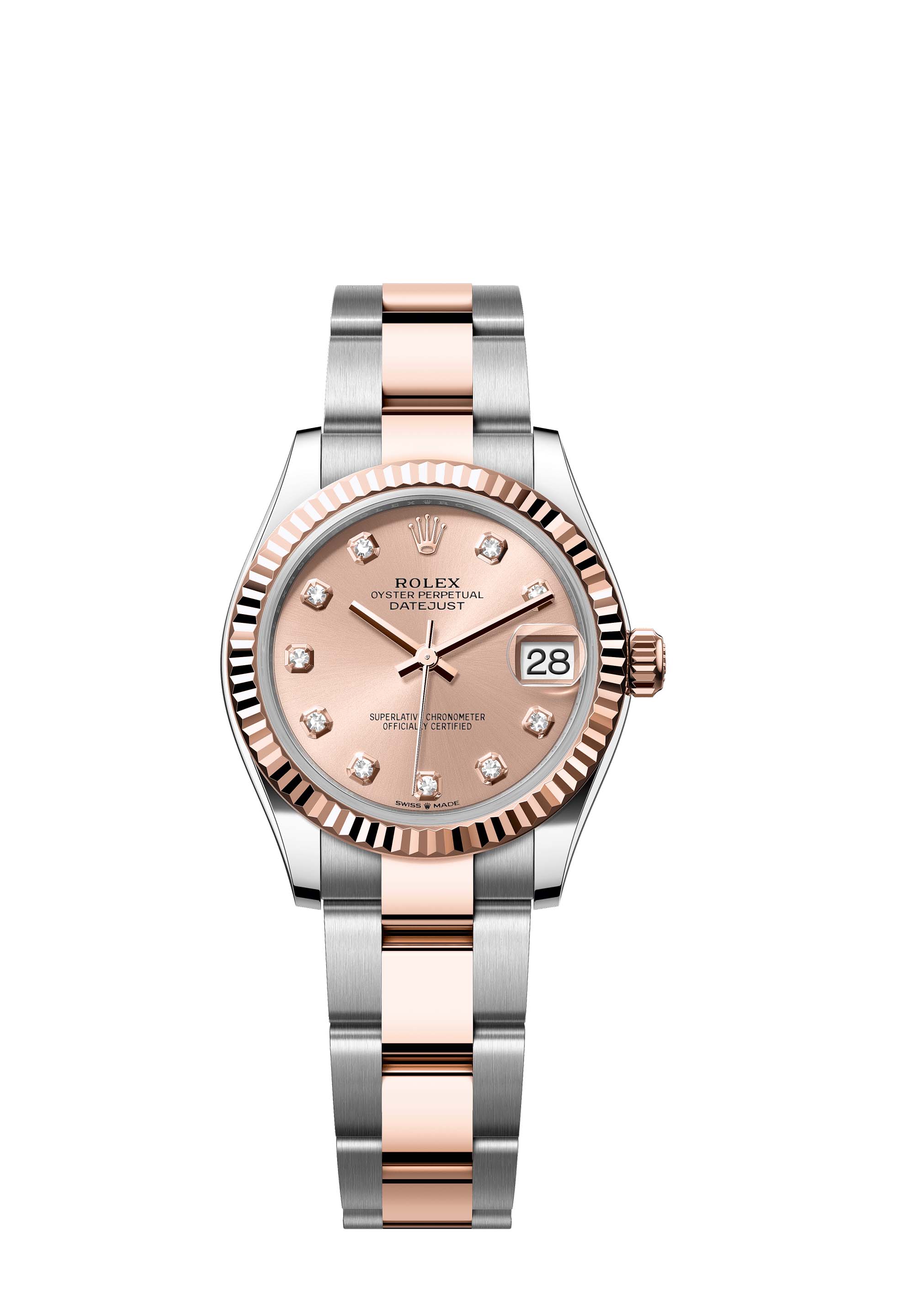 This Oyster Perpetual Datejust 31 in Oystersteel and Everose gold features a rosé colour, diamond-set dial and an Oyster bracelet.