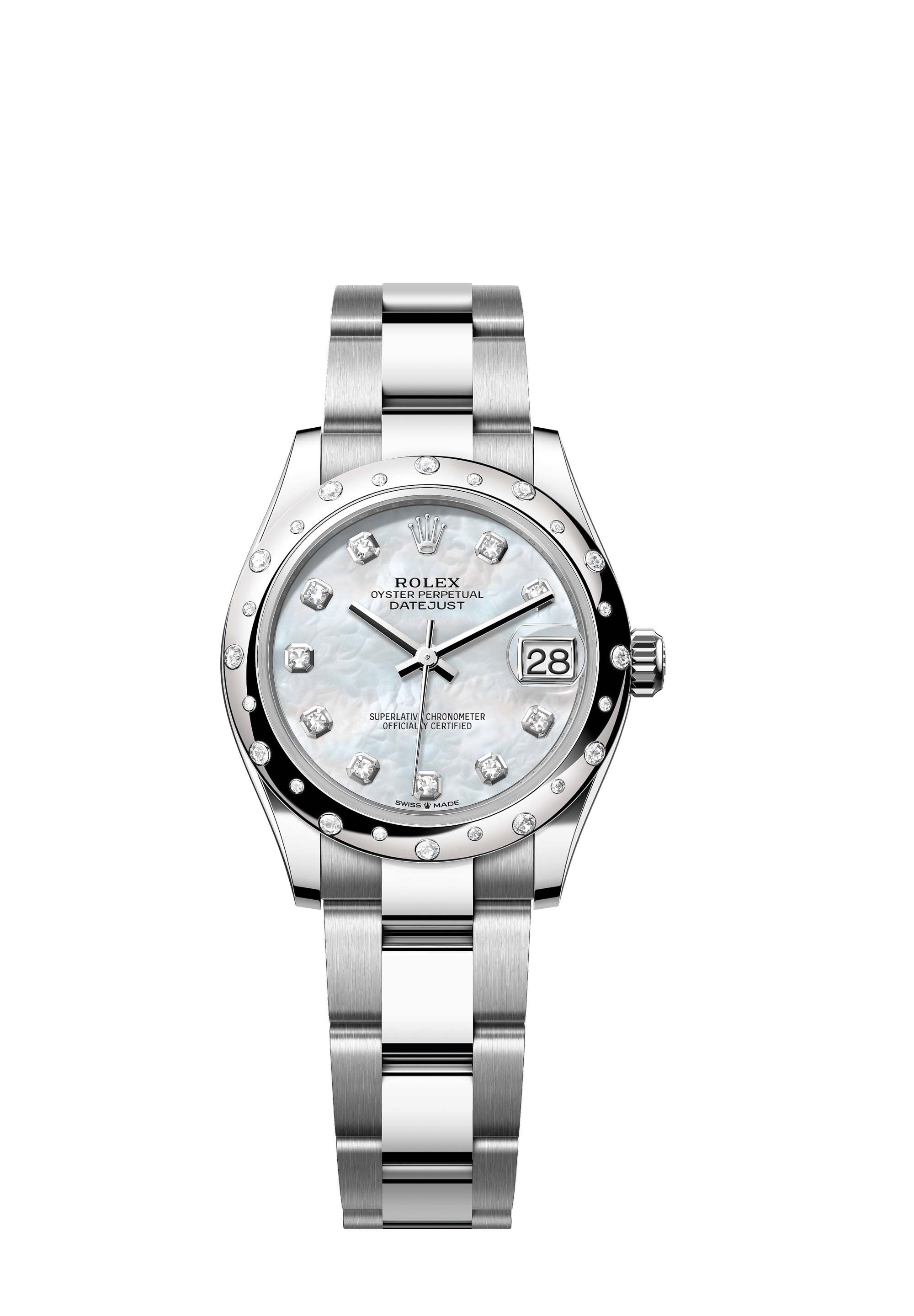 - Case : Oyster, 31 mm, Oystersteel, white gold and diamonds
