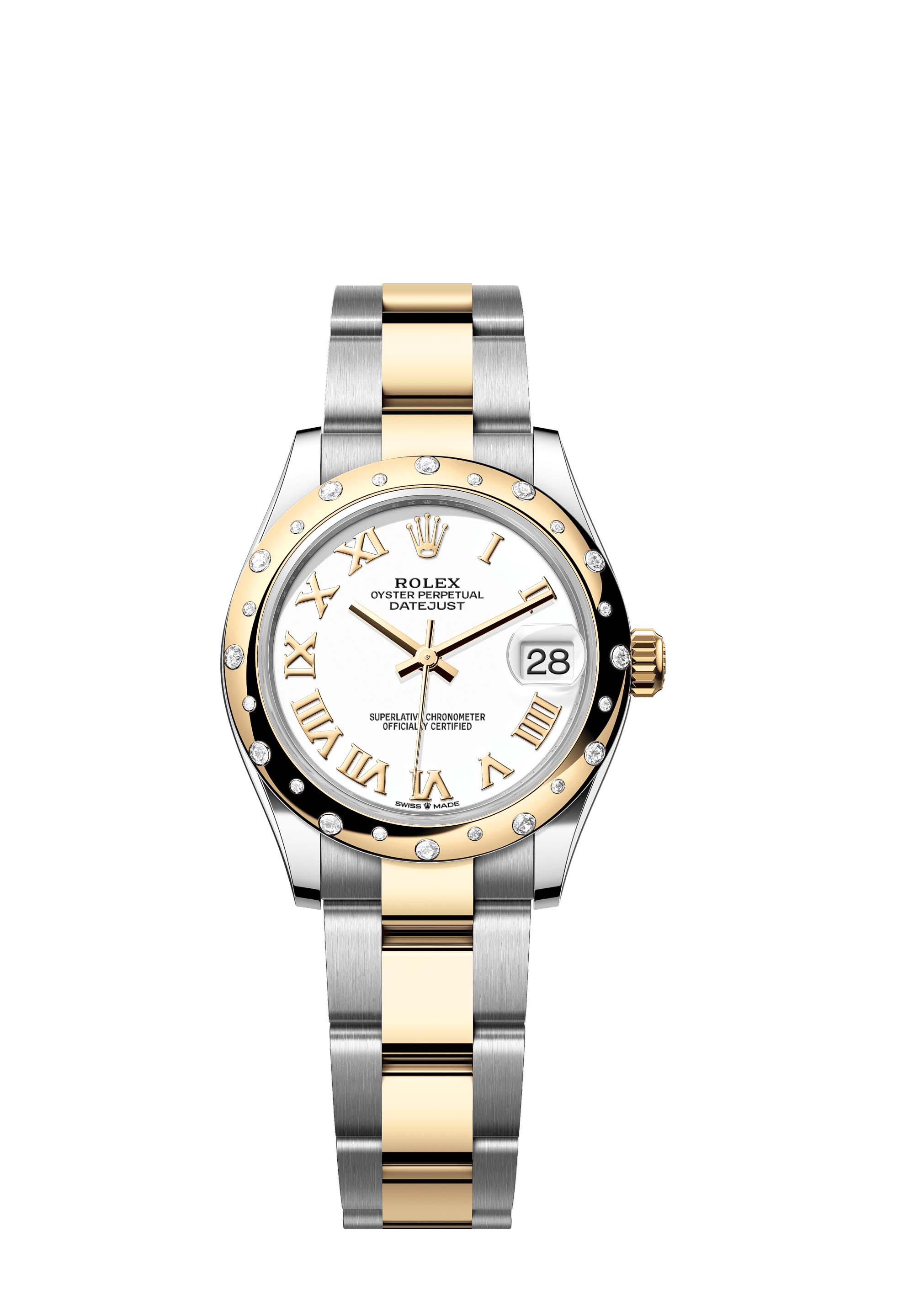 - Case : Oyster, 31 mm, Oystersteel, yellow gold and diamonds