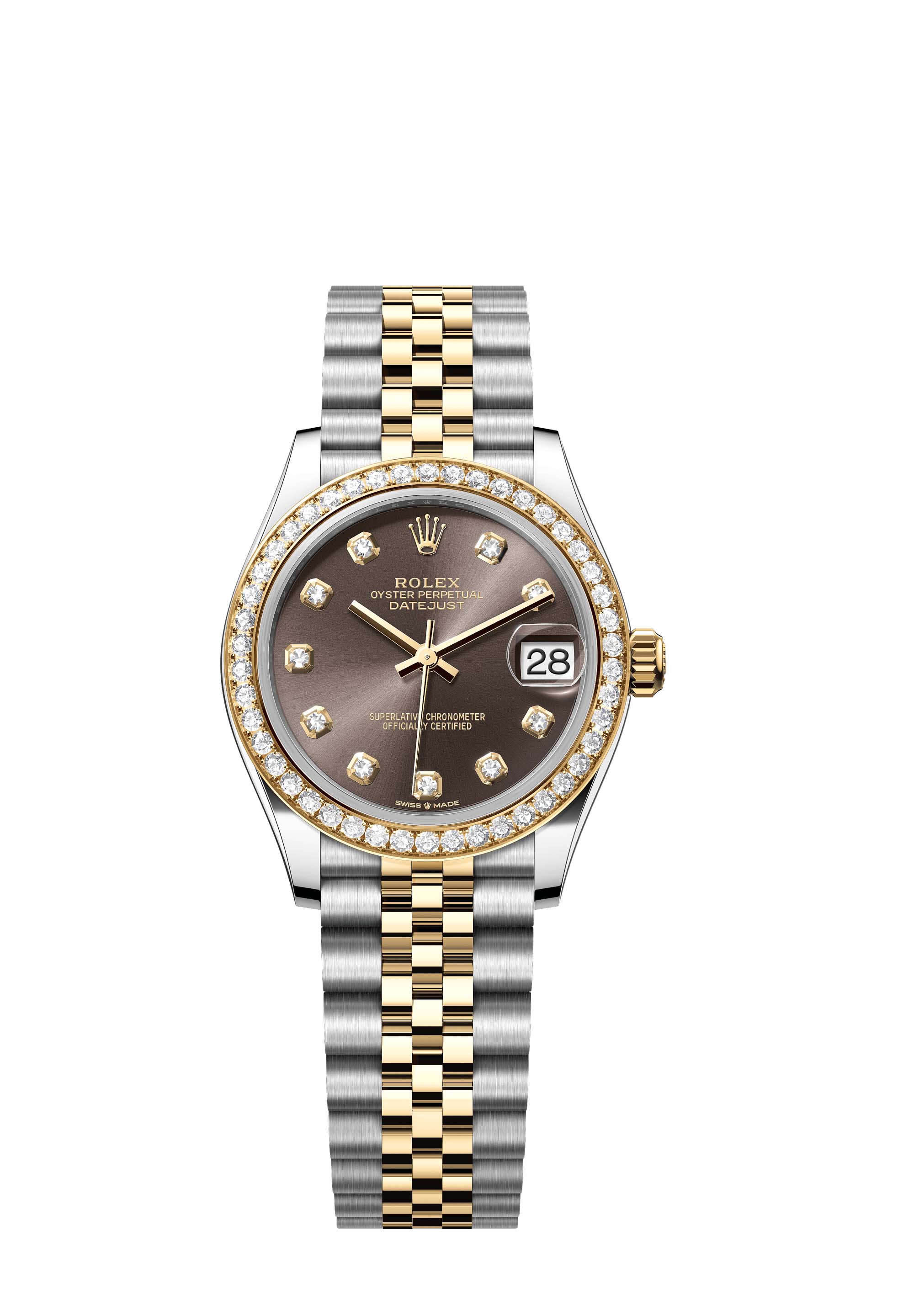 - Case : Oyster, 31 mm, Oystersteel, yellow gold and diamonds