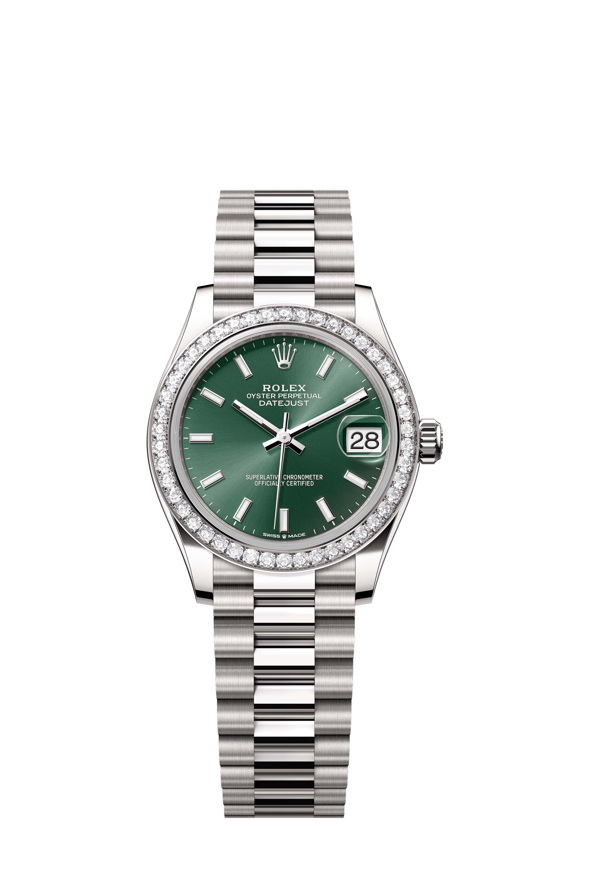 - Case : Oyster, 31 mm, white gold and diamonds