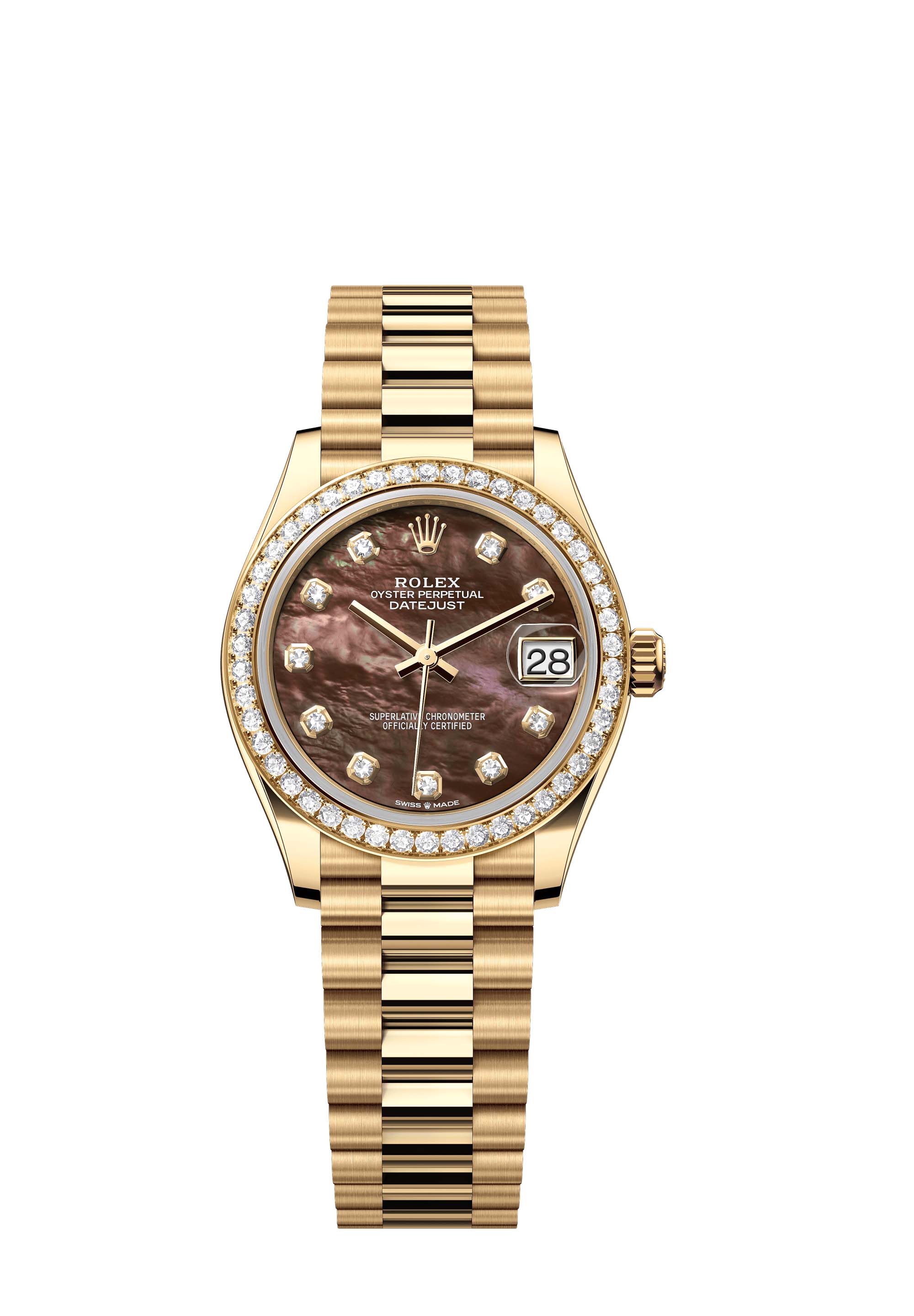 - Case : Oyster, 31 mm, yellow gold and diamonds