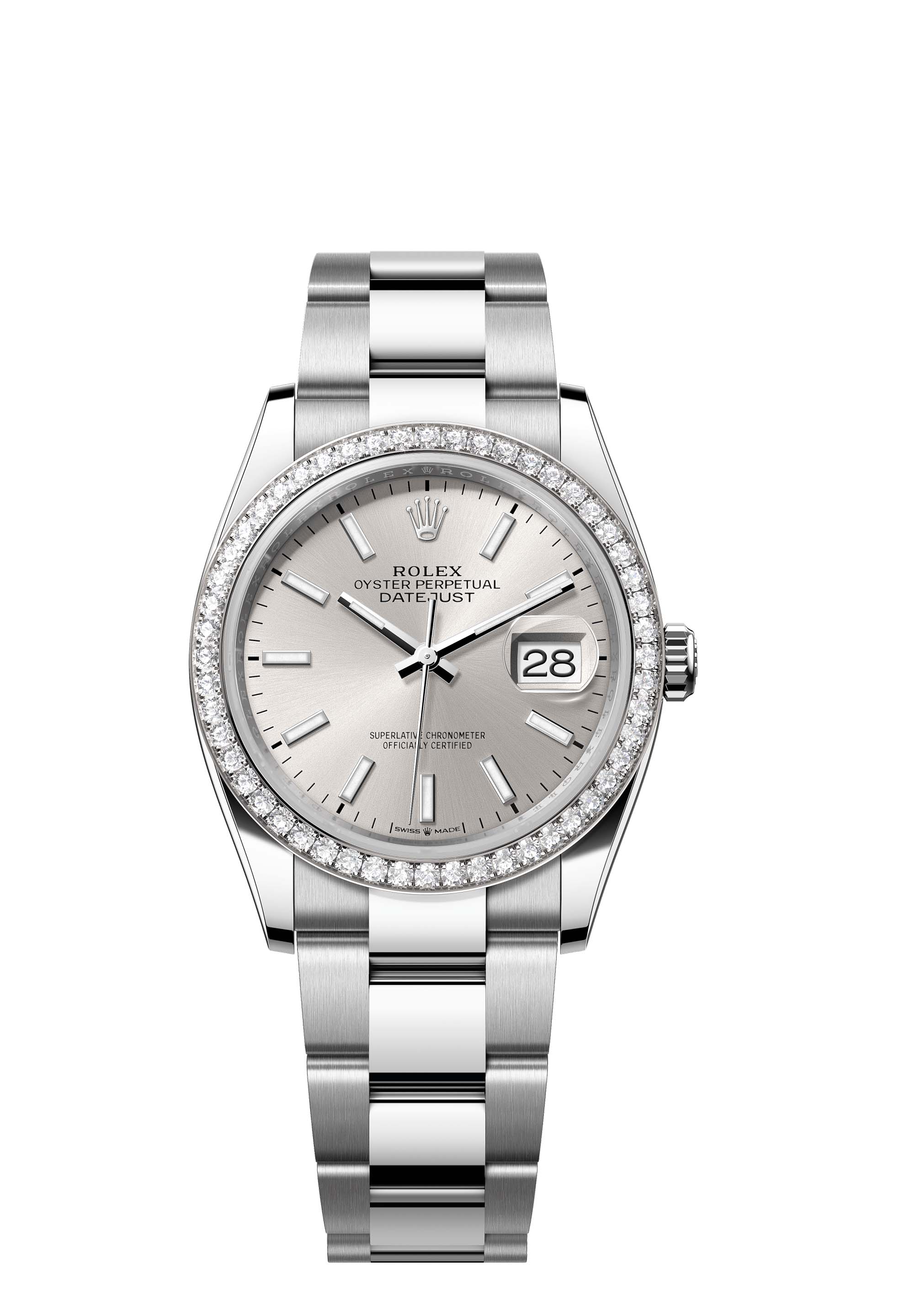 - Case : Oyster, 36 mm, Oystersteel, white gold and diamonds