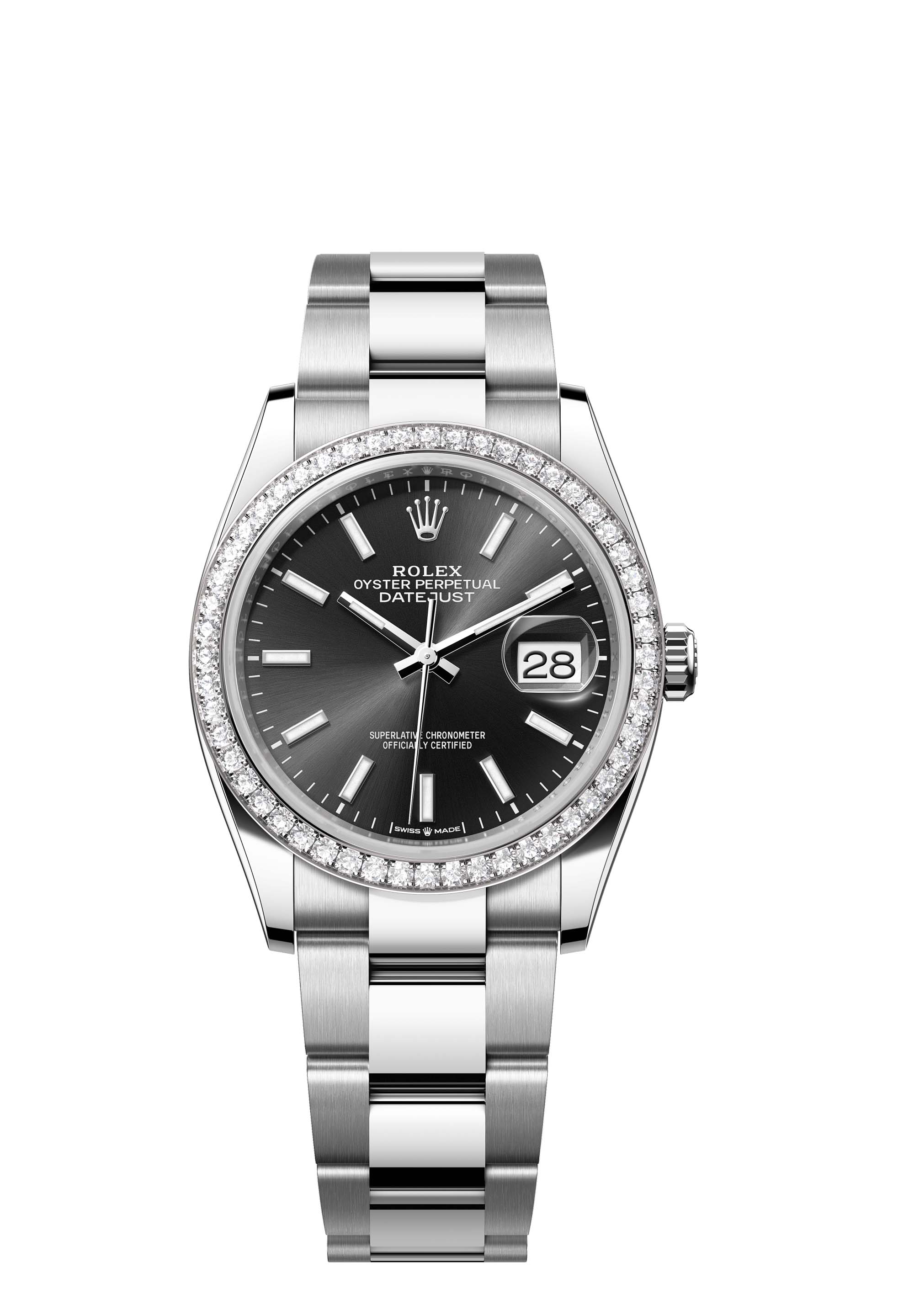 - Case : Oyster, 36 mm, Oystersteel, white gold and diamonds