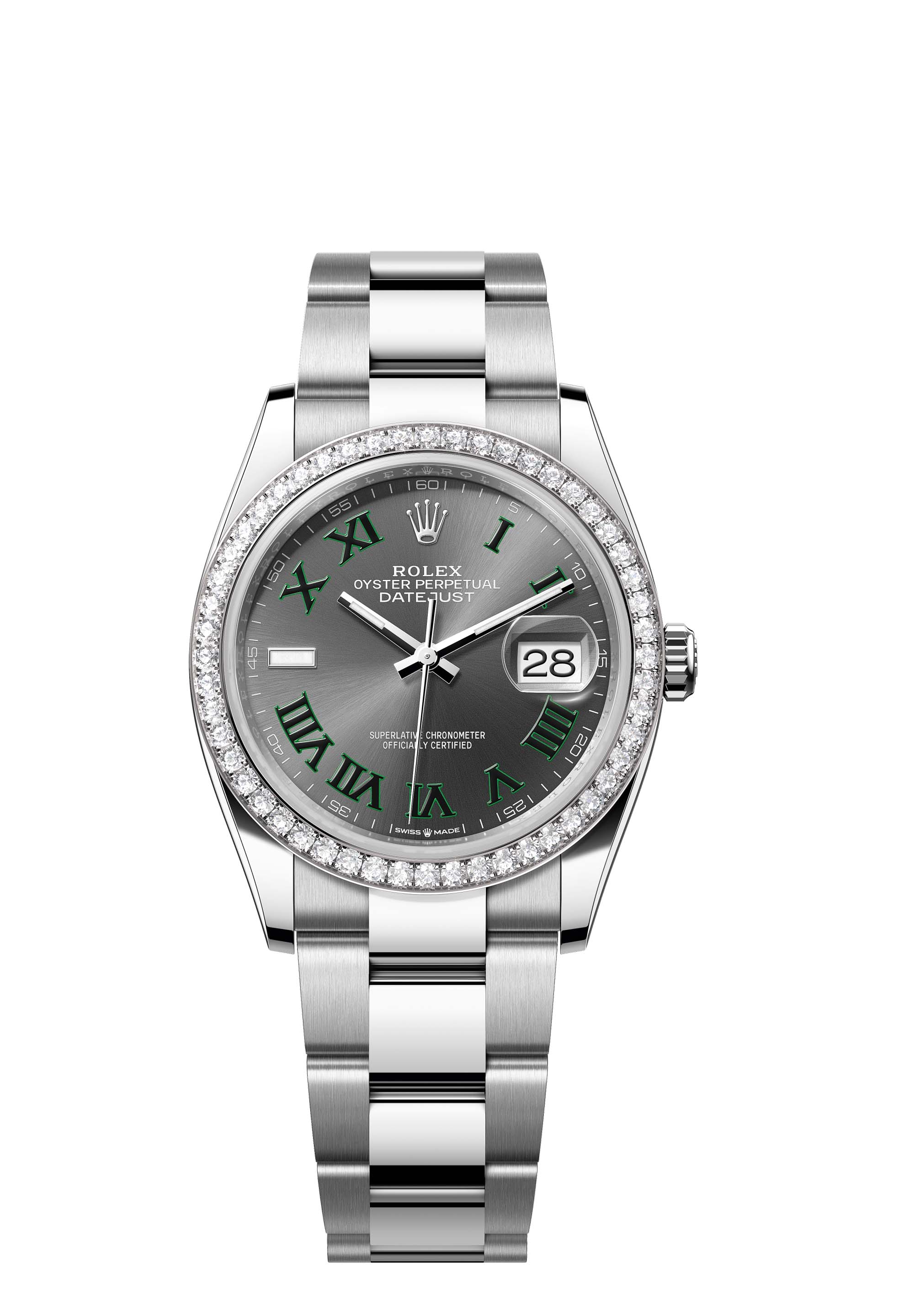 - Case : Oyster, 36 mm, Oystersteel, white gold and diamonds