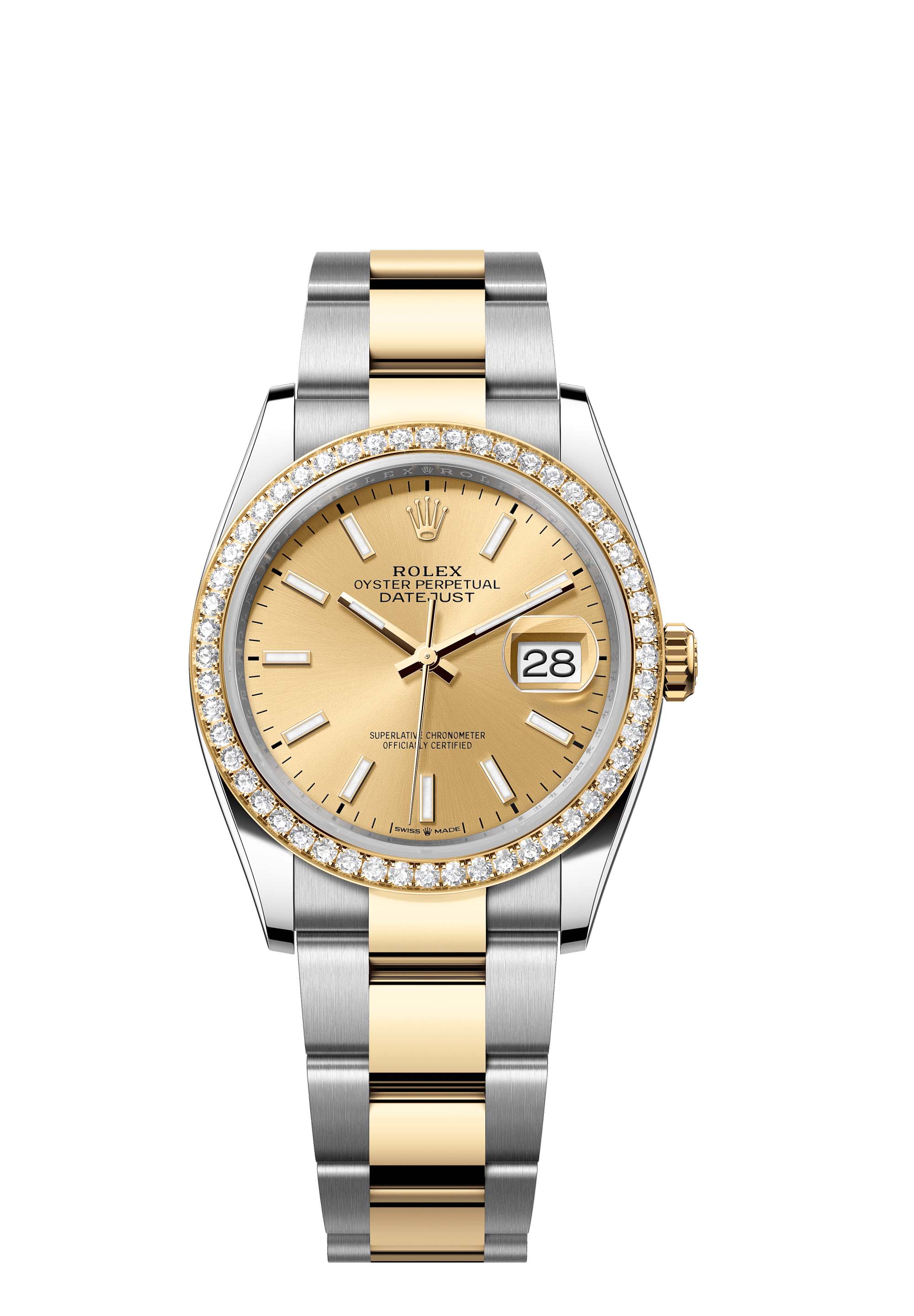 - Case : Oyster, 36 mm, Oystersteel, yellow gold and diamonds