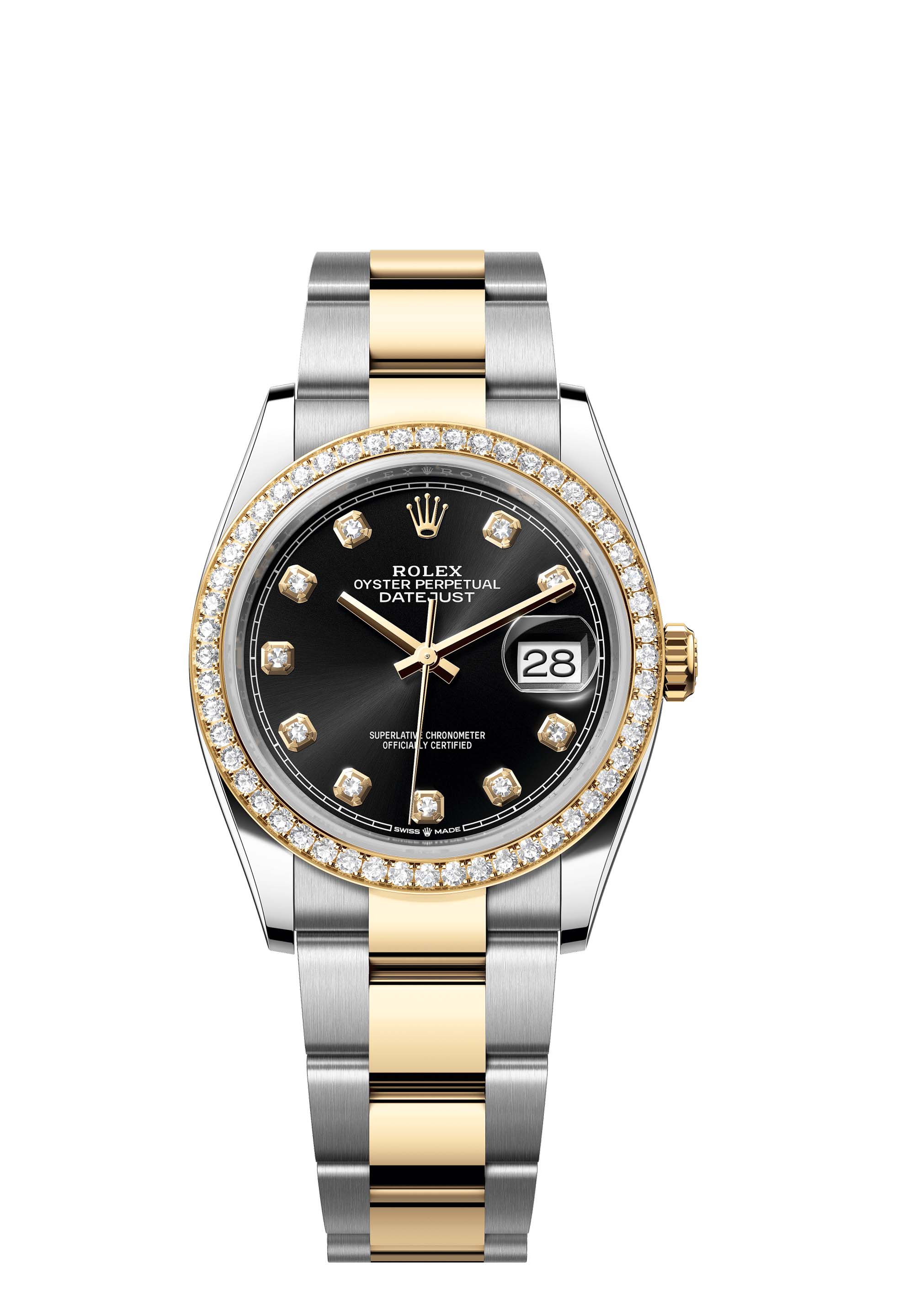 - Case : Oyster, 36 mm, Oystersteel, yellow gold and diamonds