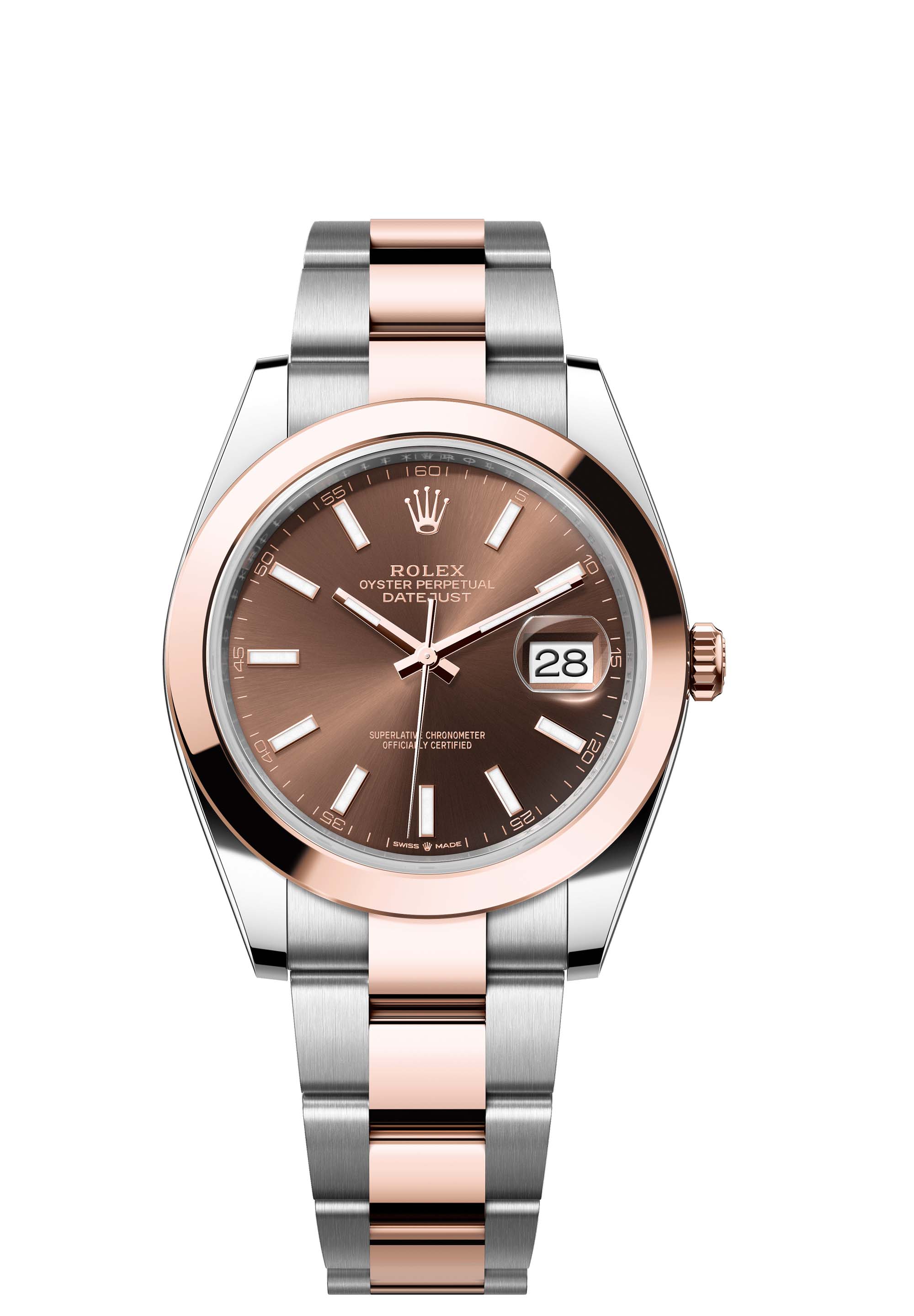 This Oyster Perpetual Datejust 41 in Oystersteel and Everose gold features a chocolate dial and an Oyster bracelet.