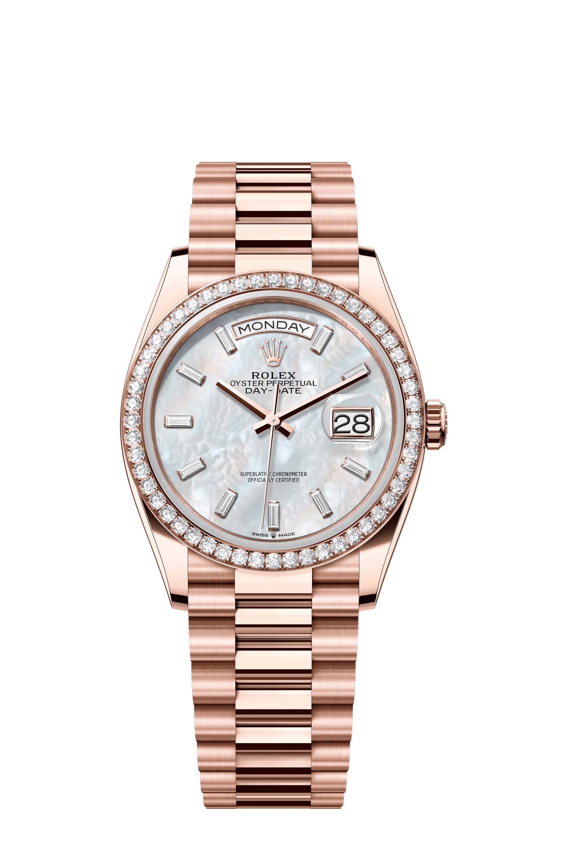 - Case : Oyster, 36 mm, Everose gold and diamonds
