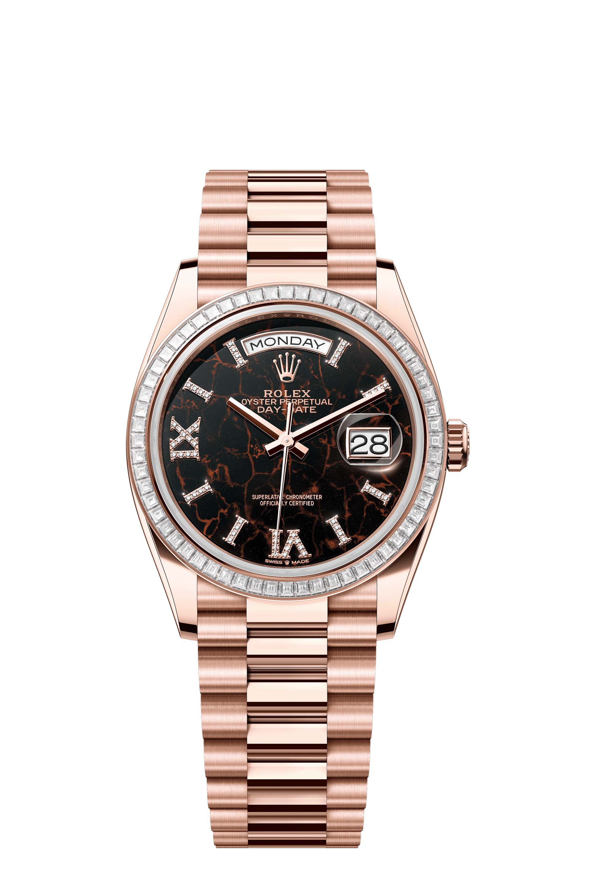 - Case : Oyster, 36 mm, Everose gold and diamonds