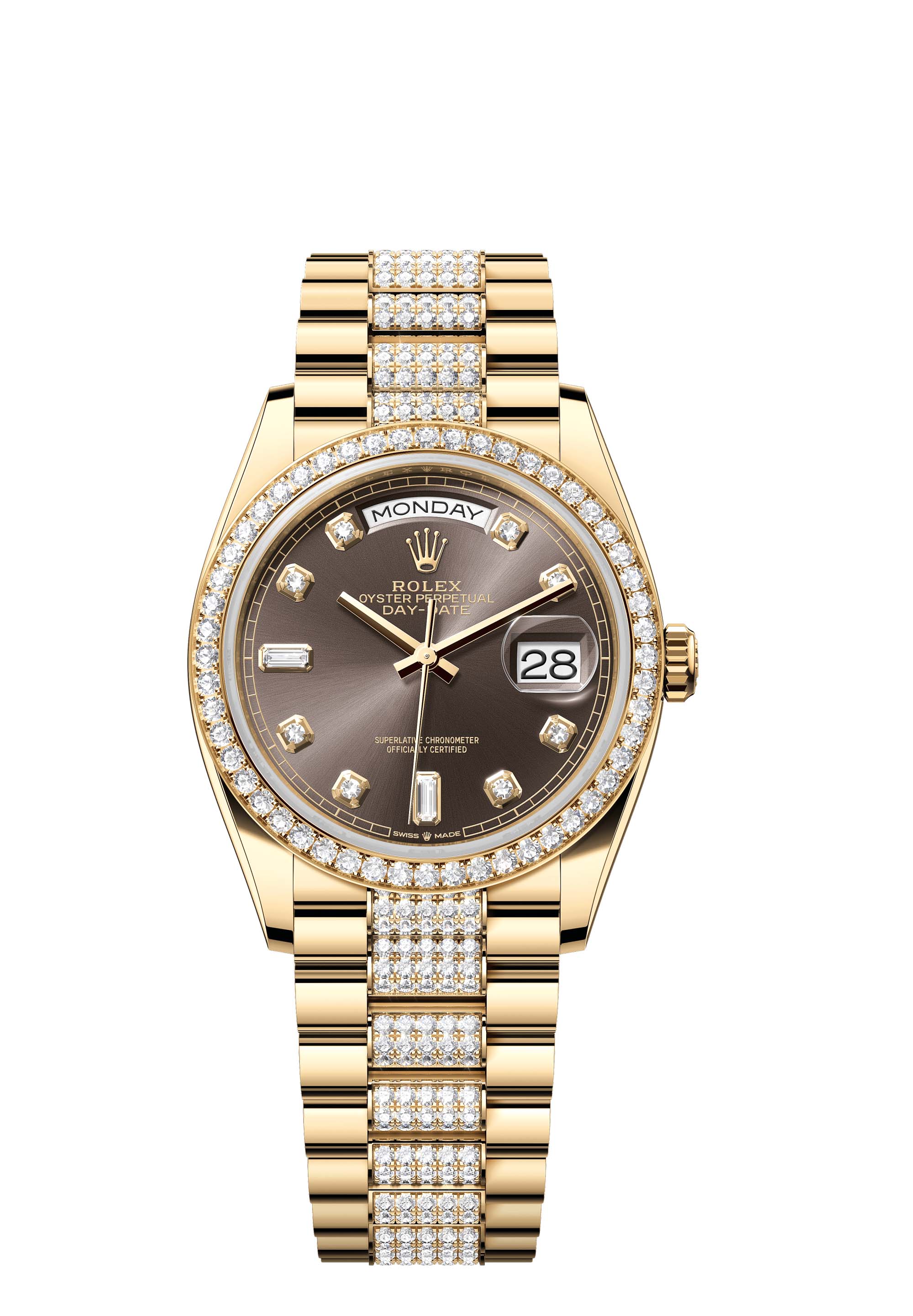- Case : Oyster, 36 mm, yellow gold and diamonds