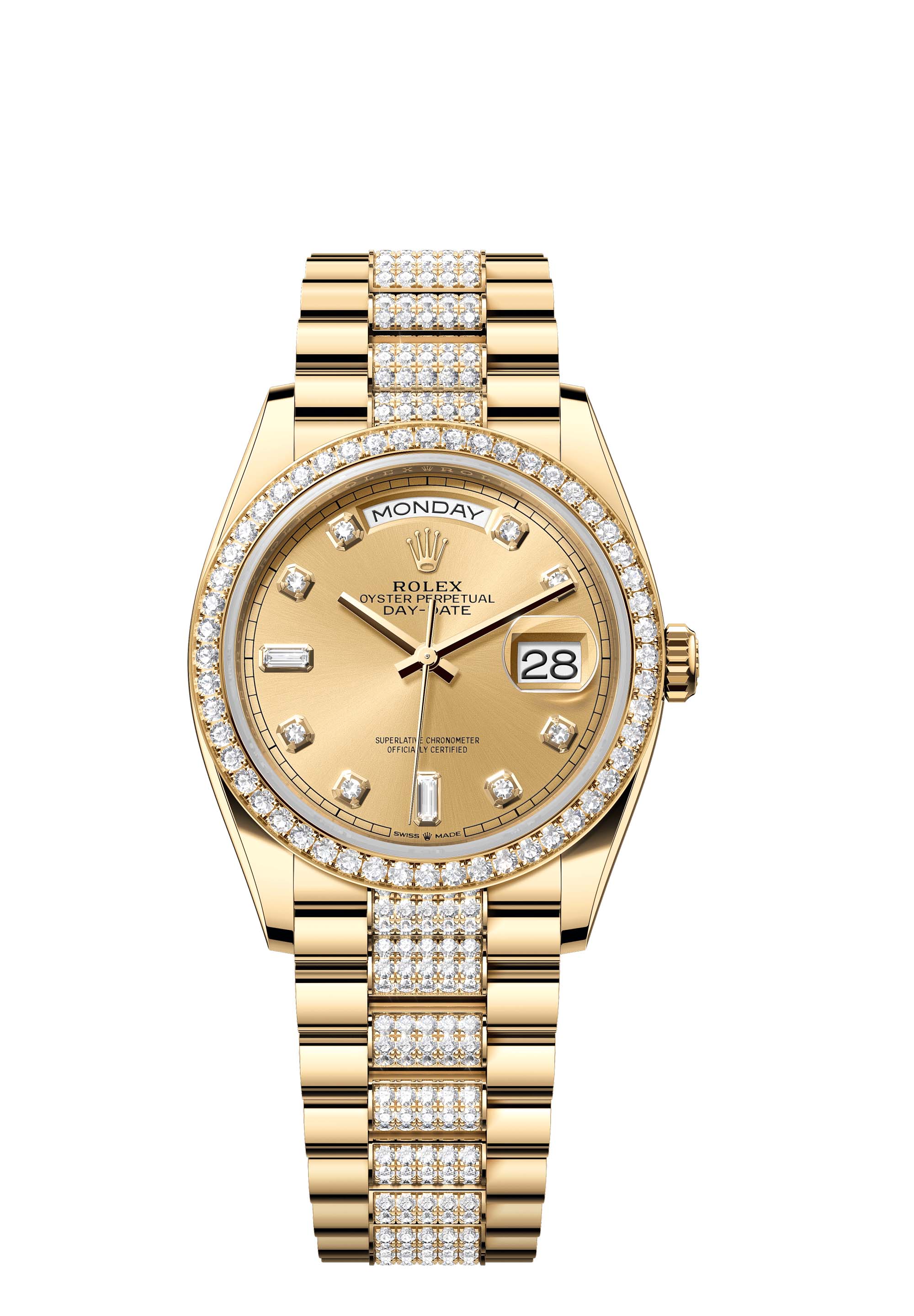 - Case : Oyster, 36 mm, yellow gold and diamonds