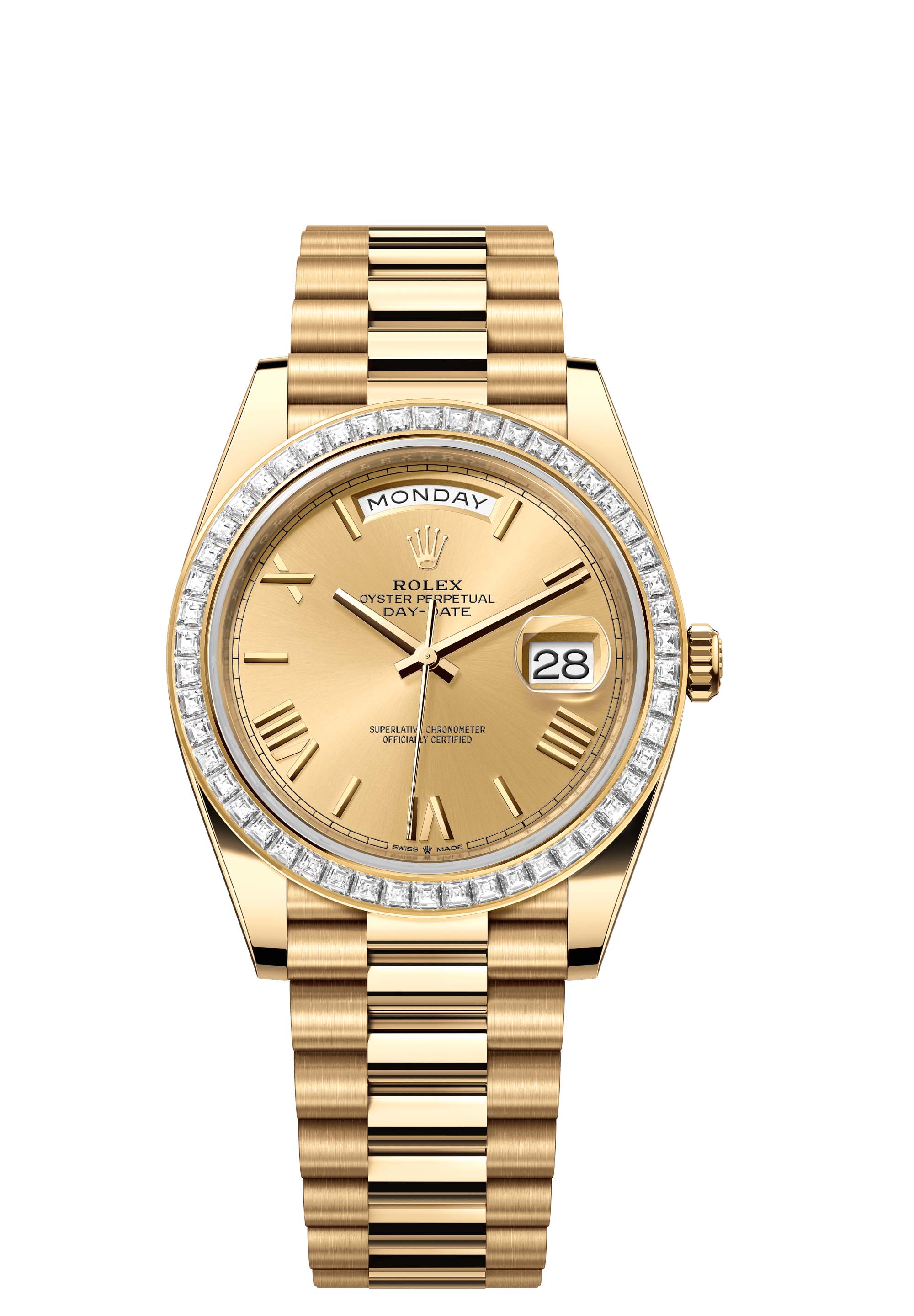 - Case : Oyster, 40 mm, yellow gold and diamonds