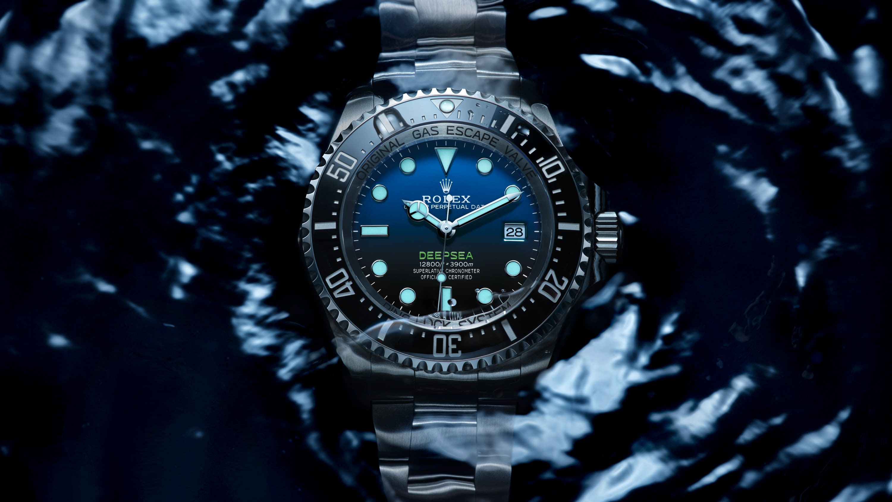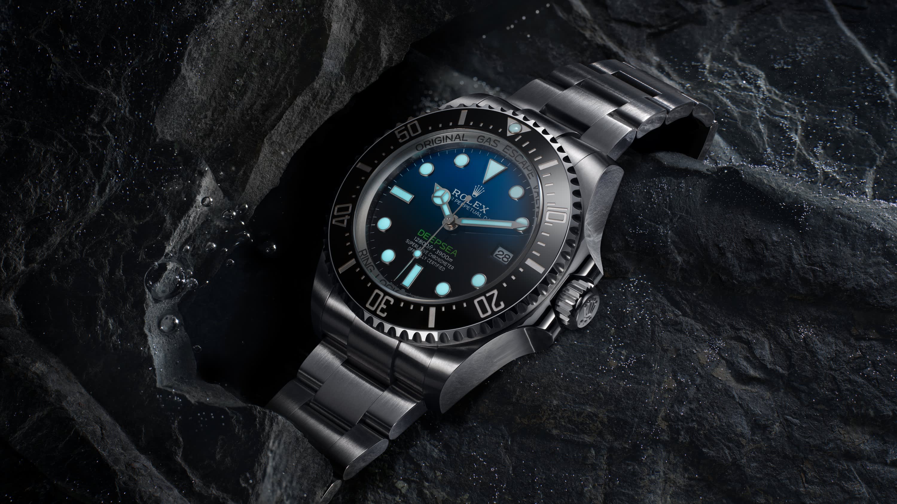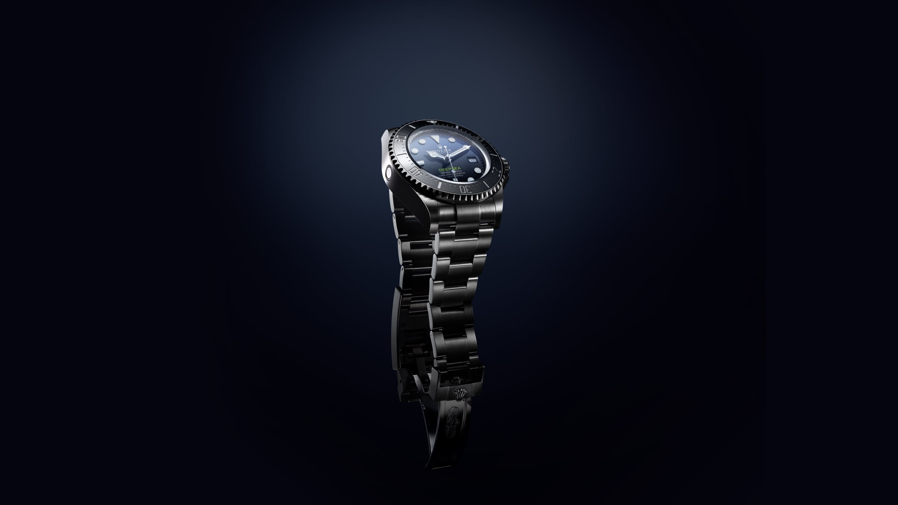 Commemorating James Cameron’s historic solo dive. From brilliant blue to bottomless black, its two-colour gradient dial celebrates one man’s journey to the deepest place on earth: the bottom of the Mariana Trench.