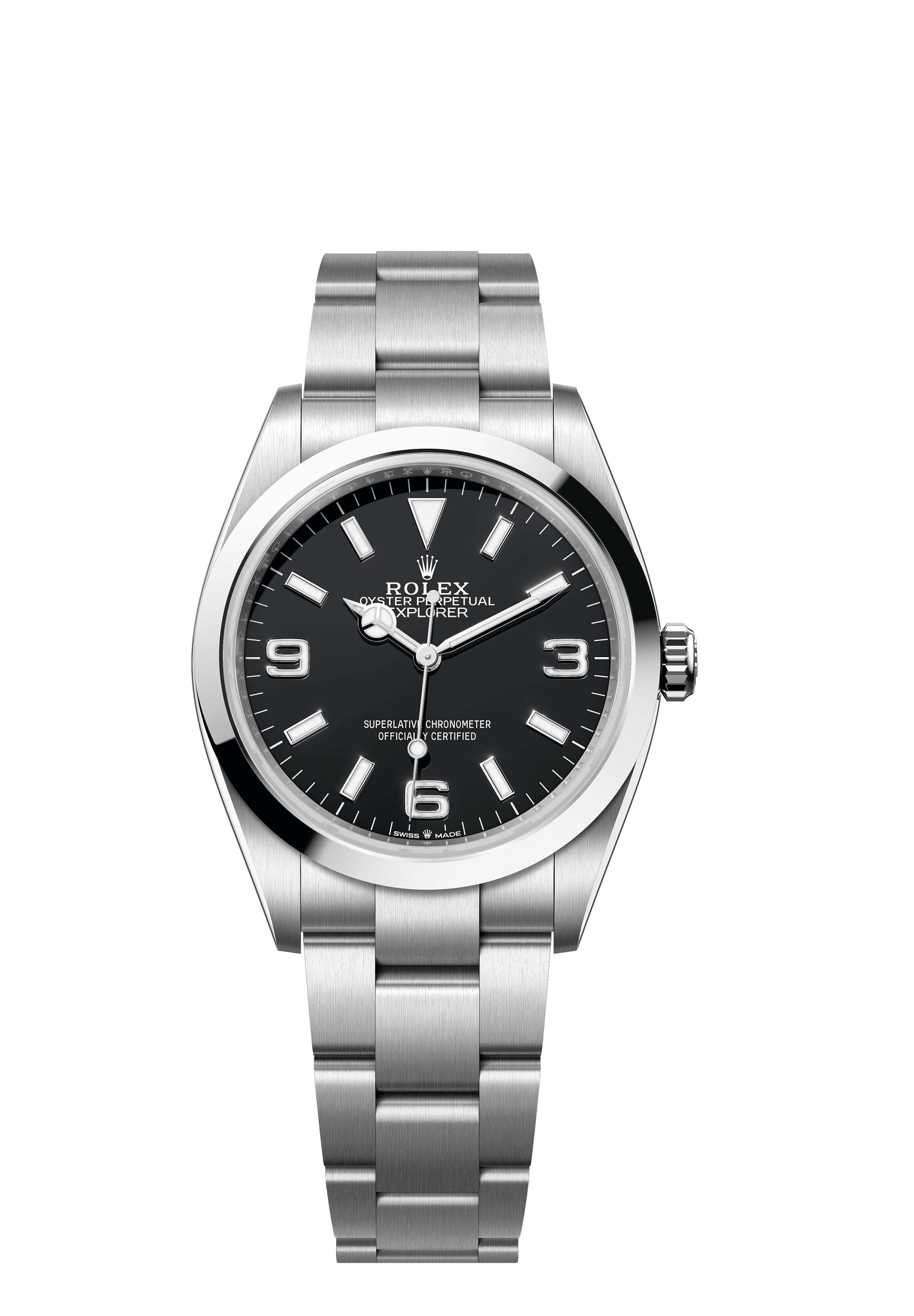 The Explorer 36 is equipped with calibre 3230, a movement entirely developed and manufactured by Rolex, launched by the brand in 2020. At the forefront of watchmaking technology, this self-winding mechanical movement led to the filing of several patents, and offers fundamental gains in terms of precision, power reserve, resistance to shocks and magnetic fields, convenience and reliability. Calibre 3230 incorporates the patented Chronergy escapement, which combines high energy efficiency with great dependability.