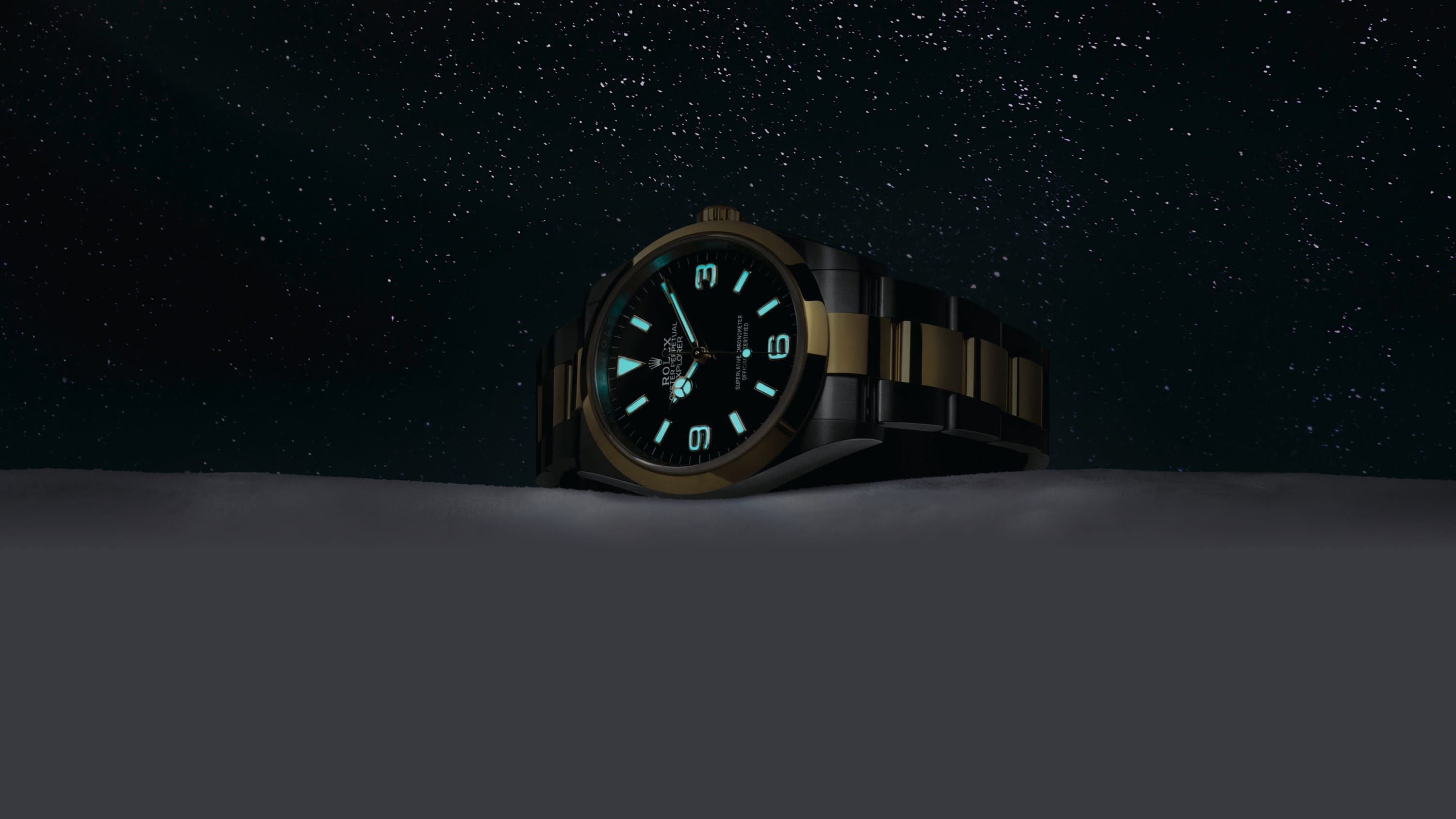 The dial is the distinctive face of a Rolex watch, the feature most responsible for its identity and readability. The Explorer model’s characteristic 3, 6 and 9 numerals are filled with a luminescent material emitting a long-lasting blue glow, like the hour markers and hands. Like all Rolex timepieces, the Explorer 36's dial is designed and manufactured in-house, largely by hand to ensure perfection.