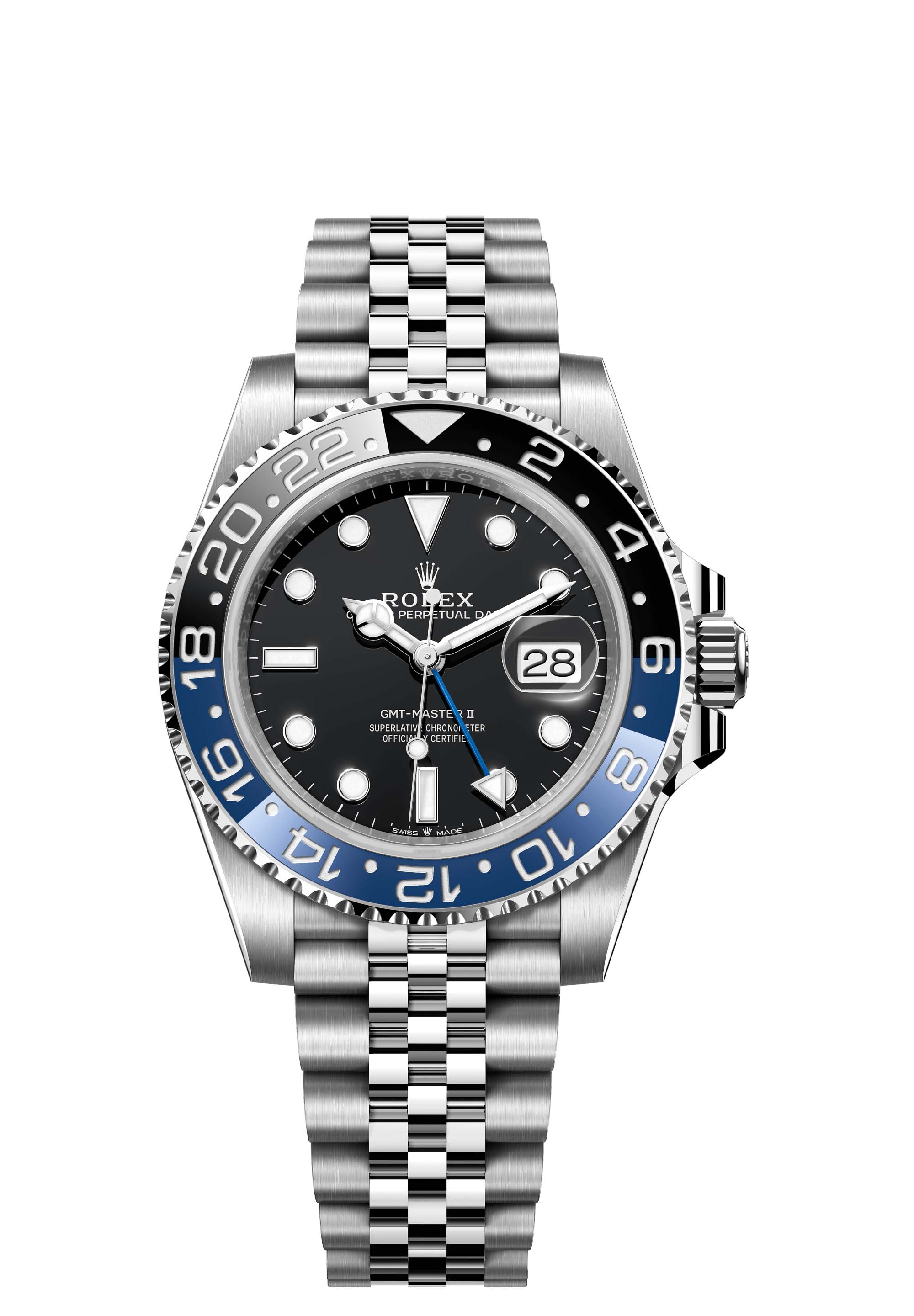The Oyster Perpetual GMT-Master II in Oystersteel with a black dial and a Jubilee bracelet.