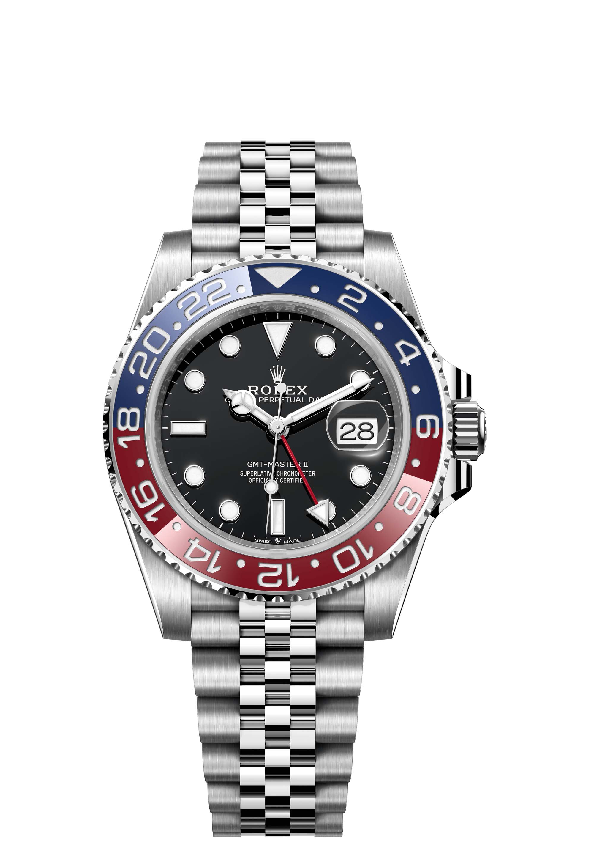 The Oyster Perpetual GMT-Master II in Oystersteel with a black dial and a Jubilee bracelet.