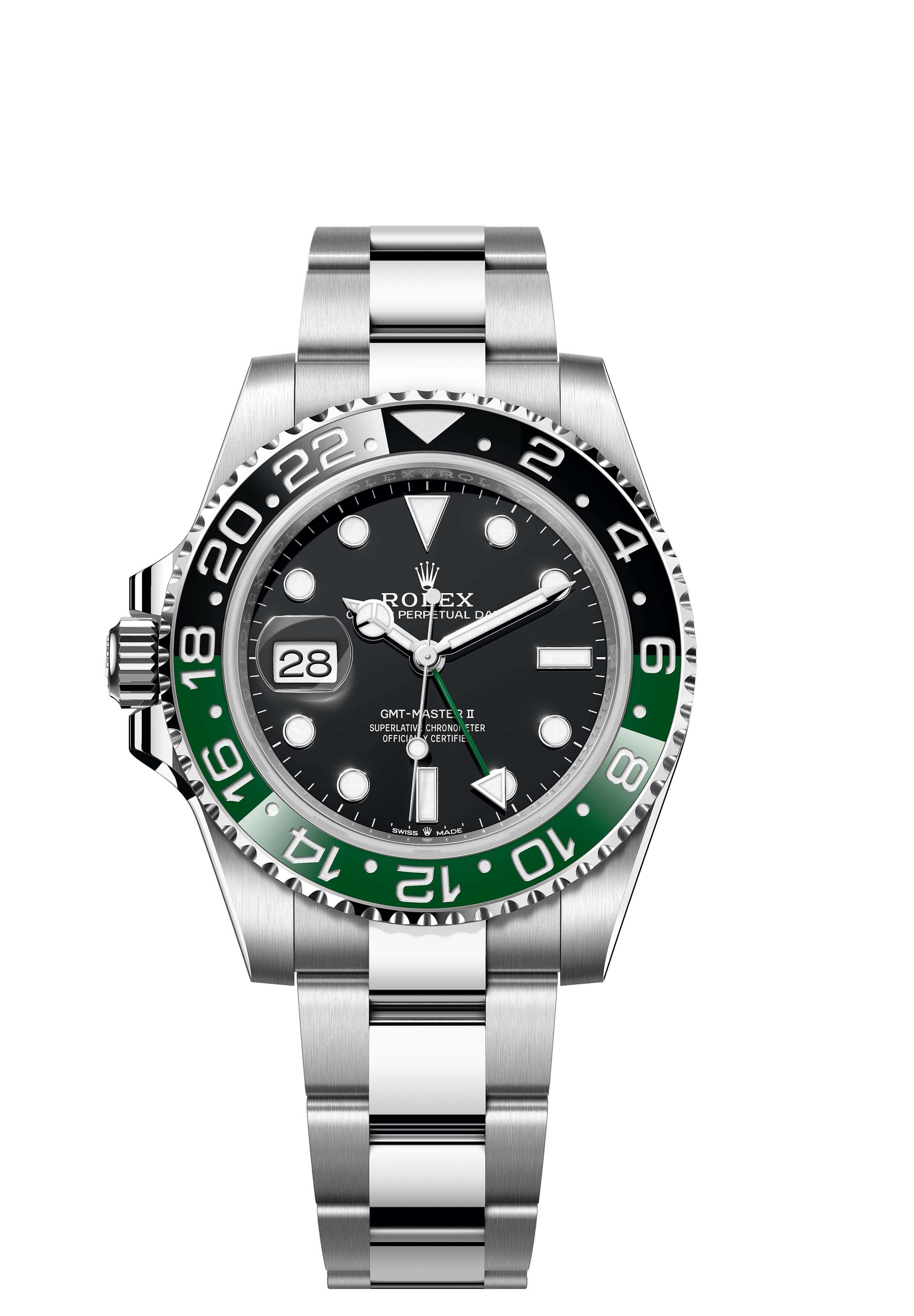 The Oyster Perpetual GMT-Master II in Oystersteel with a black dial and an Oyster bracelet.