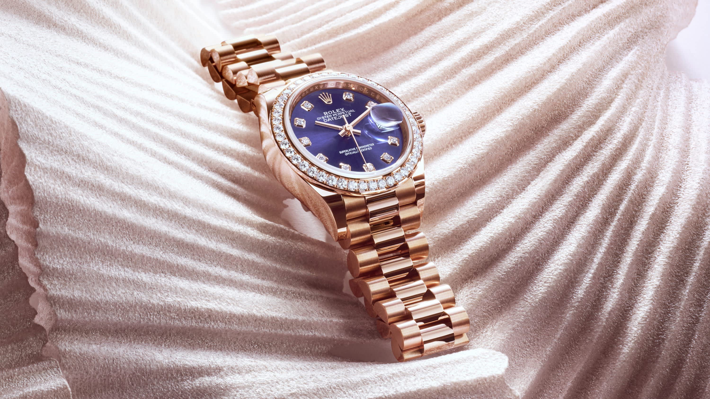 - Case : Oyster, 28 mm, Everose gold and diamonds