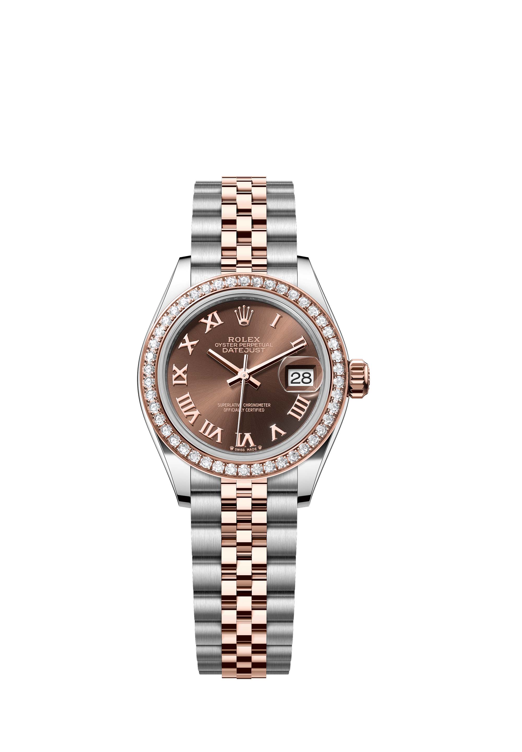 - Case : Oyster, 28 mm, Oystersteel, Everose gold and diamonds