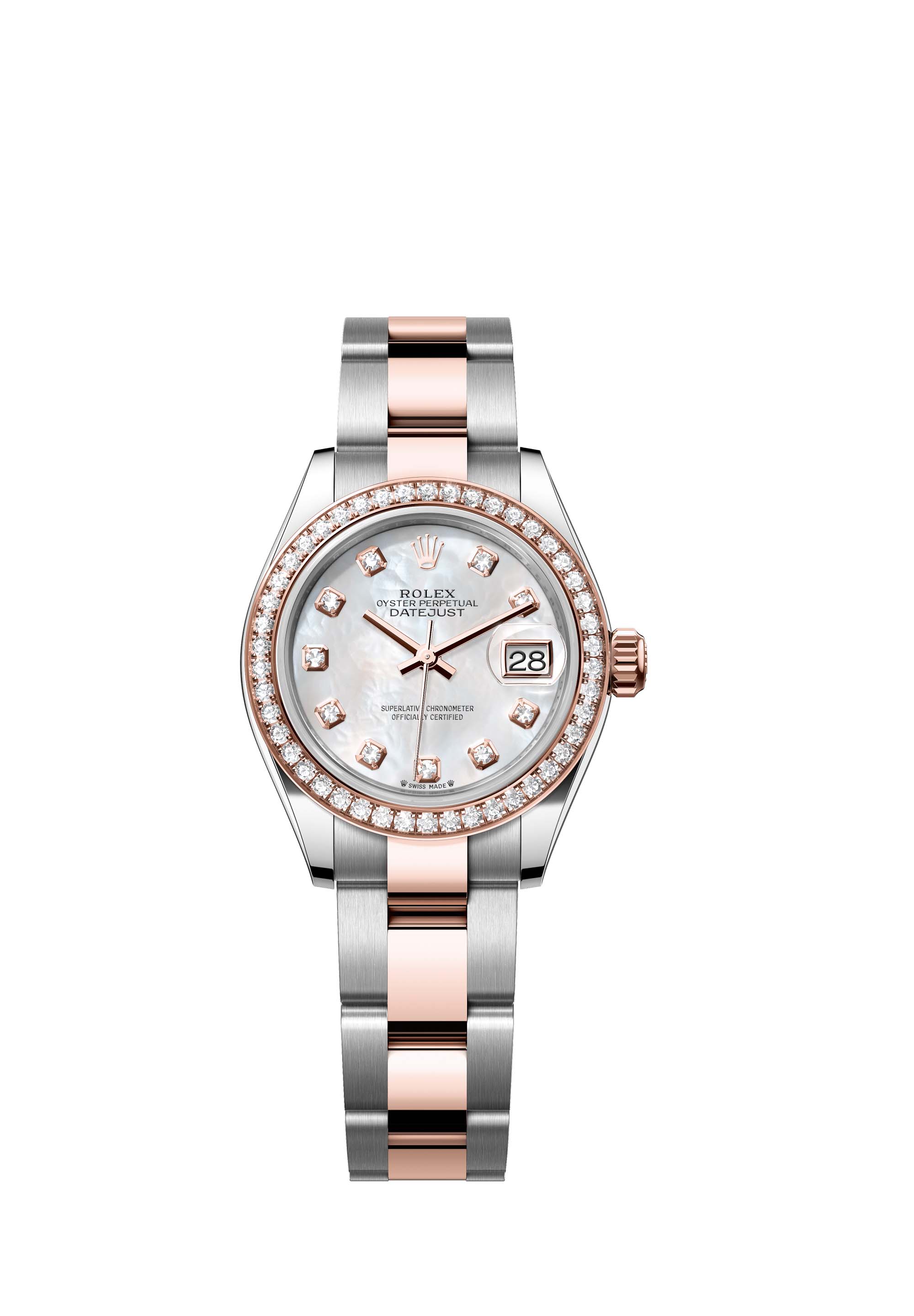 - Case : Oyster, 28 mm, Oystersteel, Everose gold and diamonds