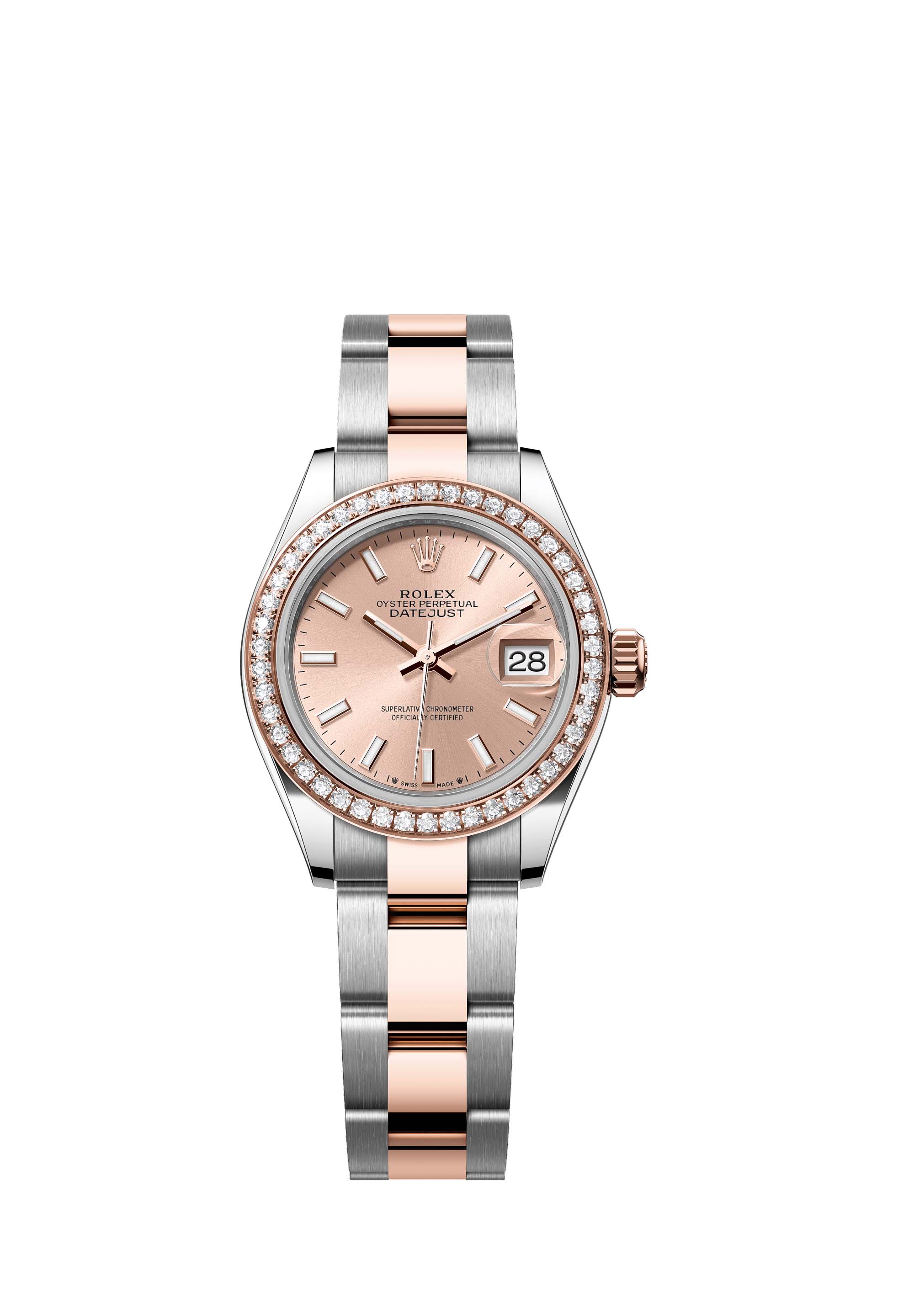 - Case : Oyster, 28 mm, Oystersteel, Everose gold and diamonds