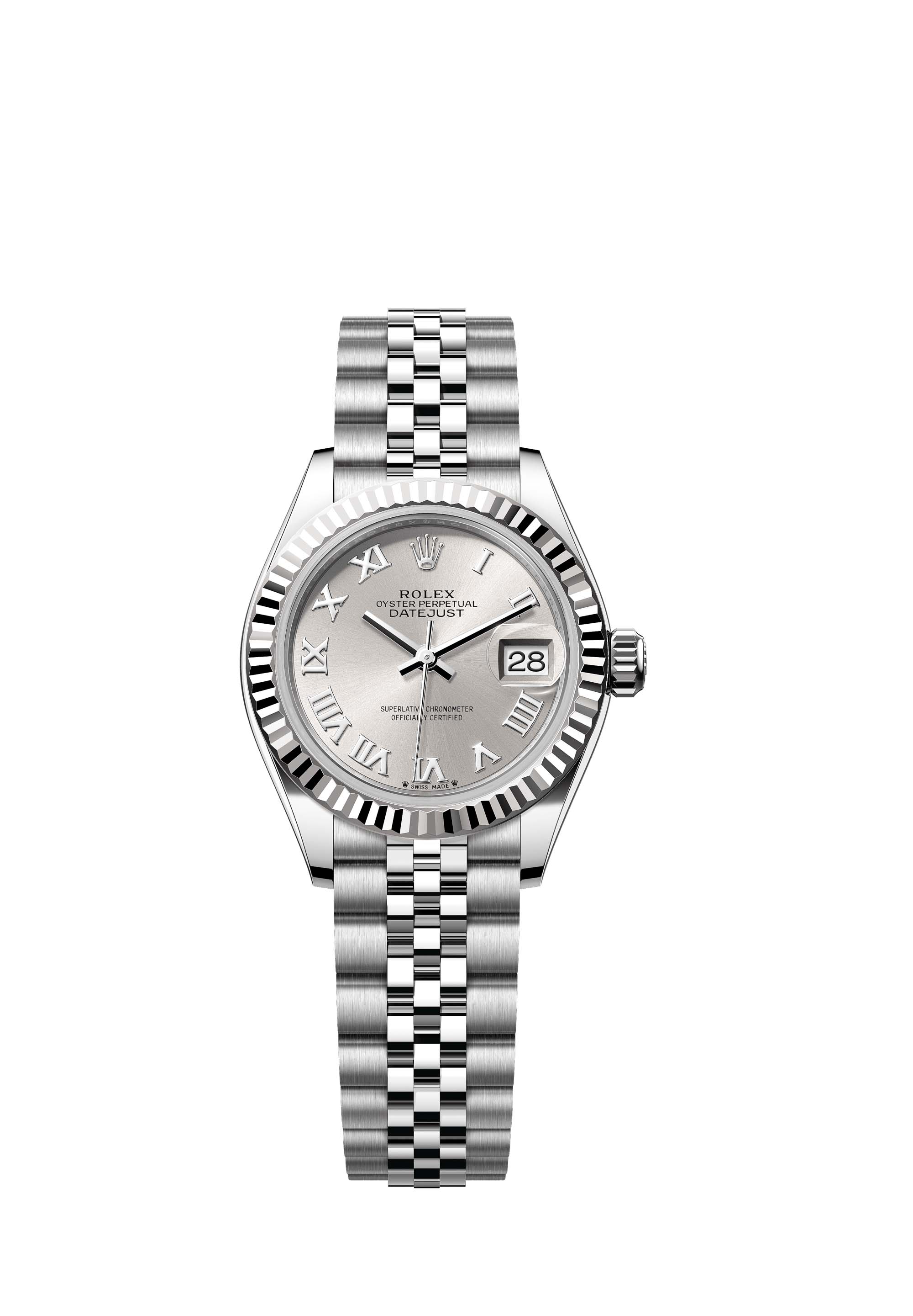 This Oyster Perpetual Lady-Datejust in Oystersteel and white gold features a silver dial and a Jubilee bracelet.