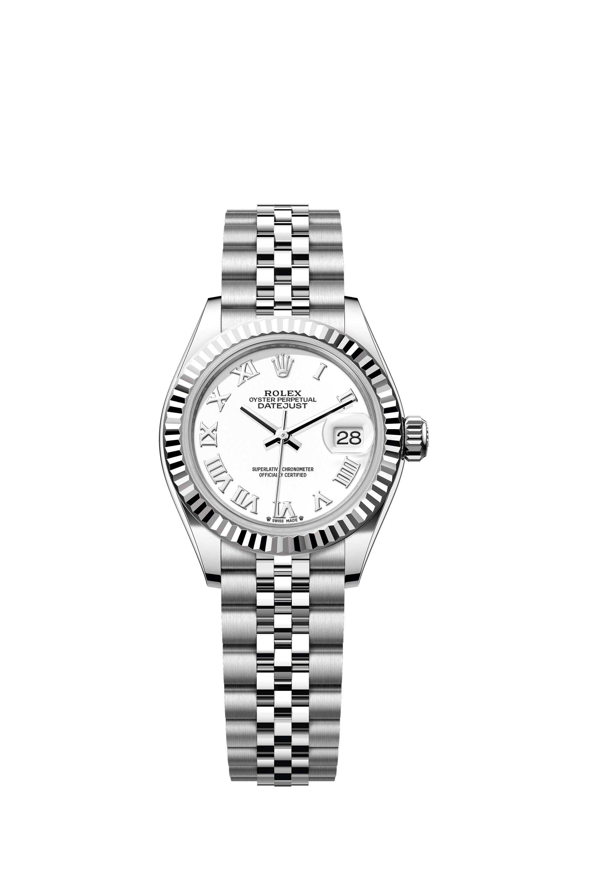 This Oyster Perpetual Lady-Datejust in Oystersteel and white gold features a white dial and a Jubilee bracelet.
