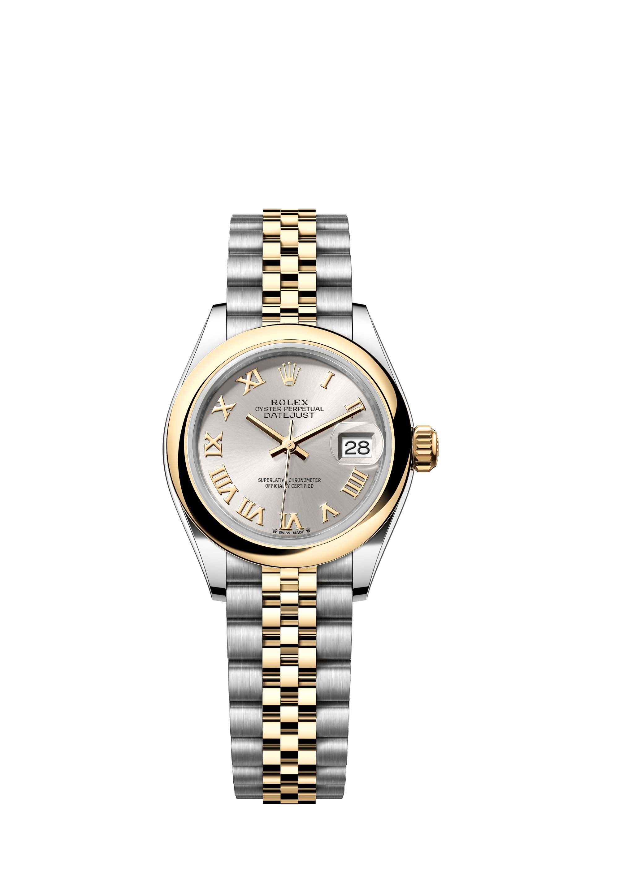 This Oyster Perpetual Lady-Datejust in Oystersteel and yellow gold features a silver dial and a Jubilee bracelet.