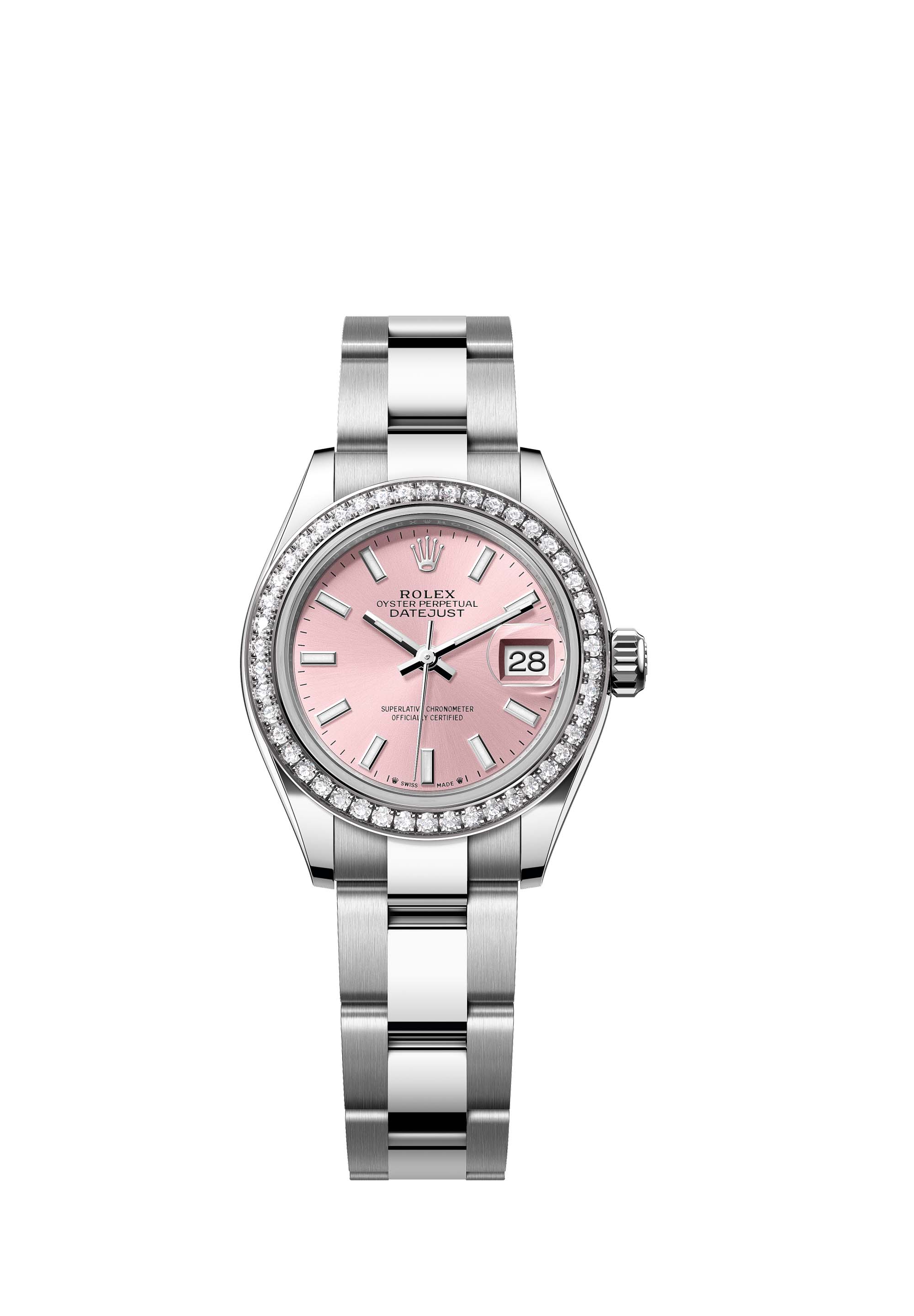 - Case : Oyster, 28 mm, Oystersteel, white gold and diamonds