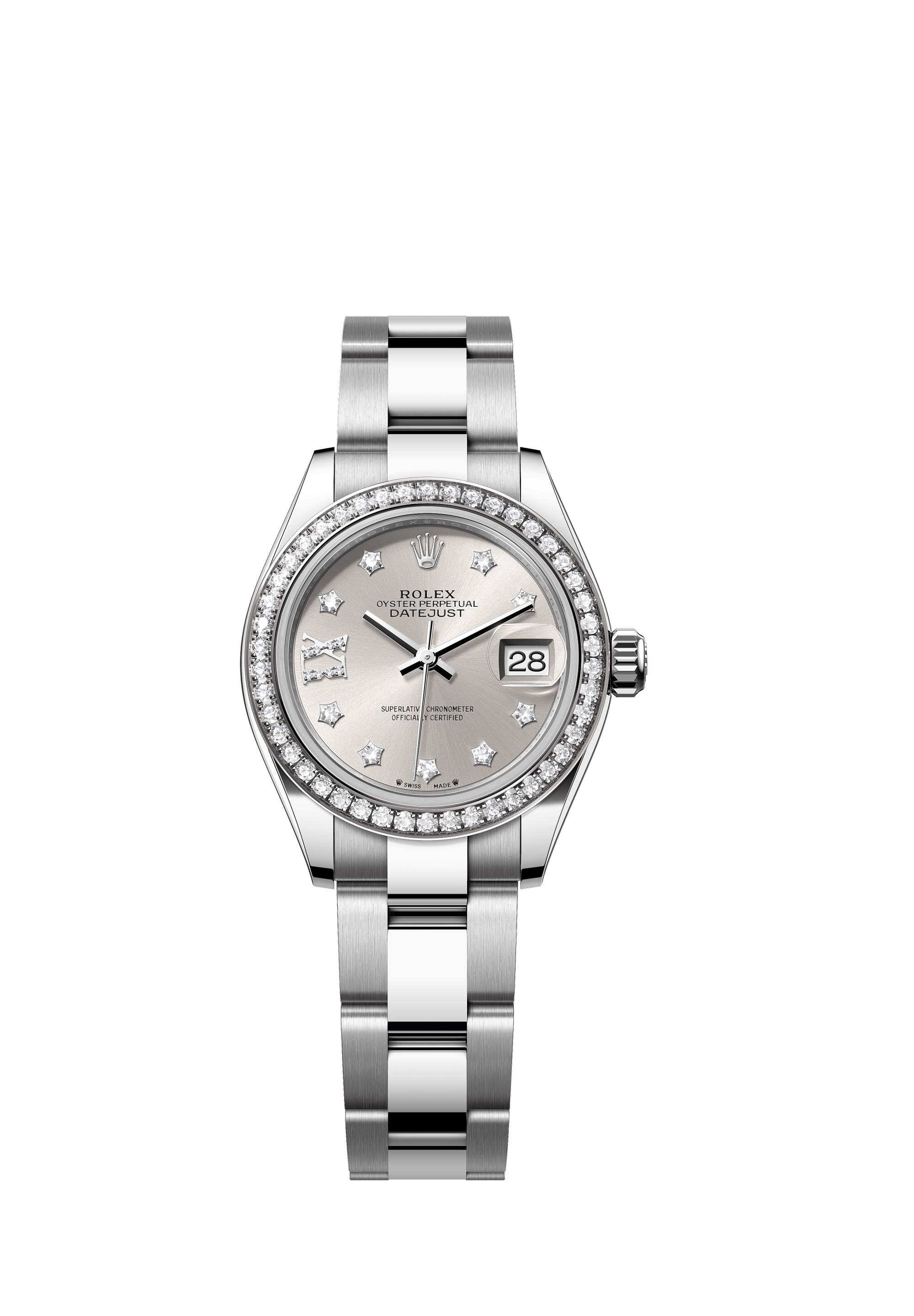 - Case : Oyster, 28 mm, Oystersteel, white gold and diamonds