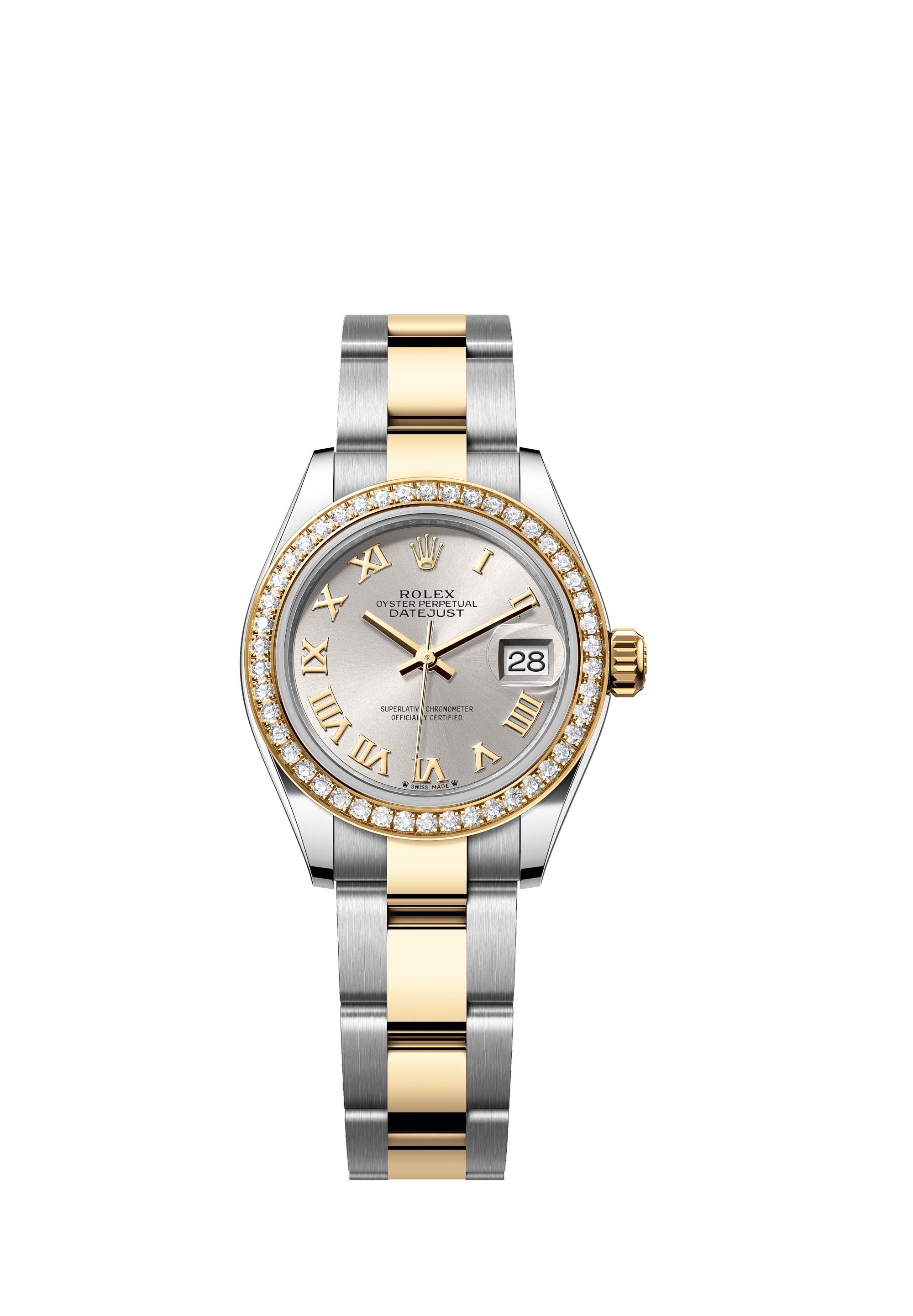 - Case : Oyster, 28 mm, Oystersteel, yellow gold and diamonds