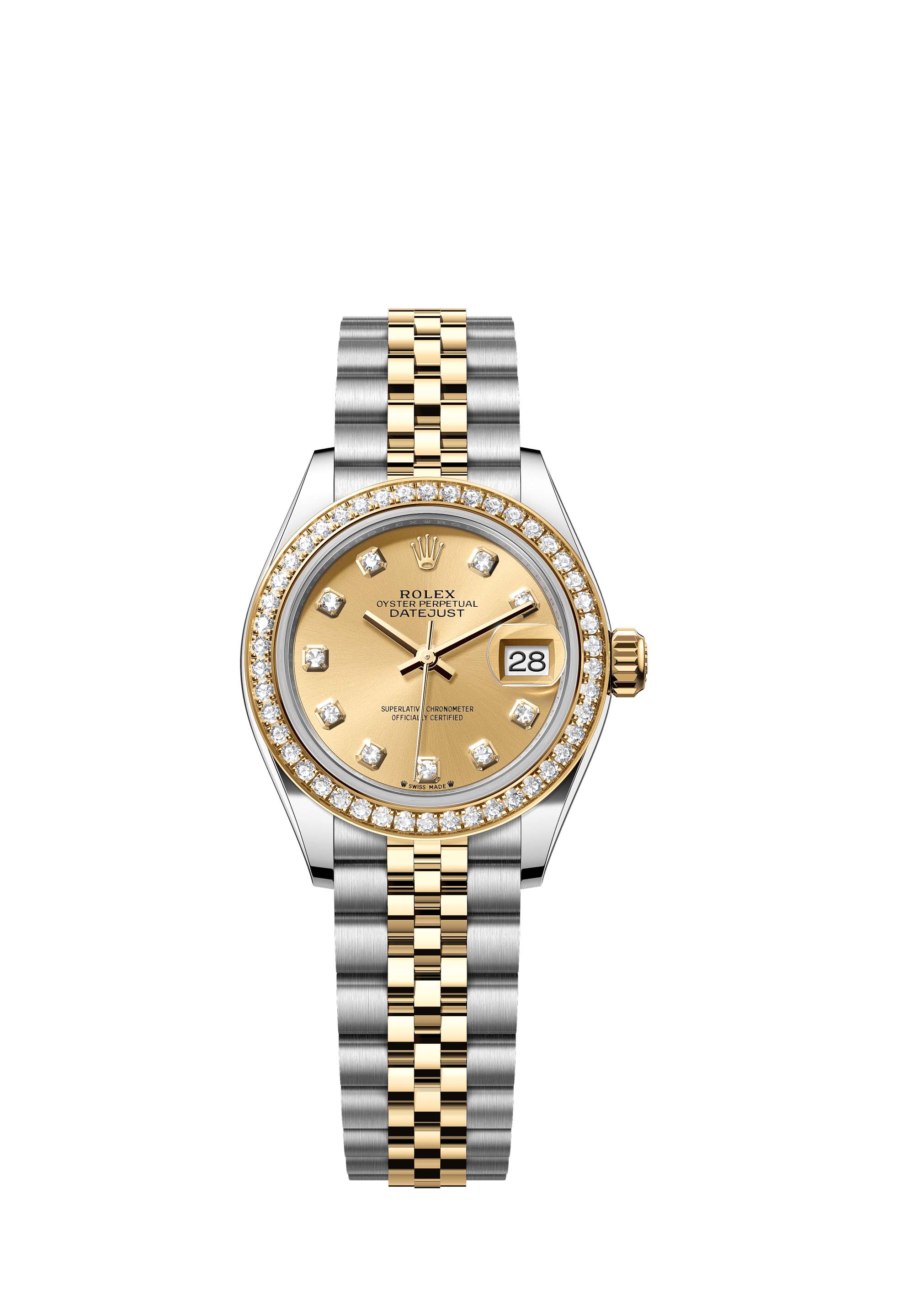 - Case : Oyster, 28 mm, Oystersteel, yellow gold and diamonds