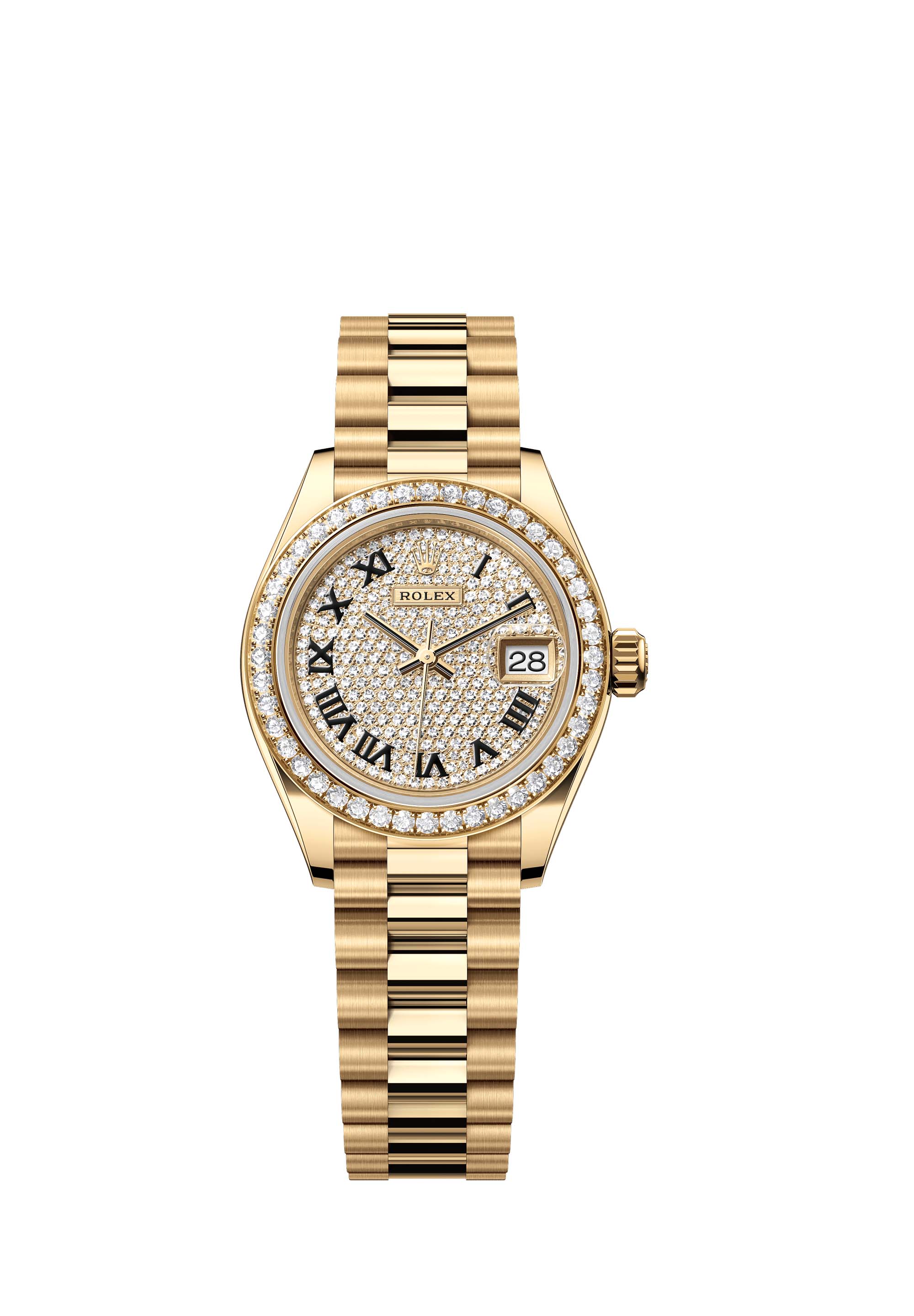 - Case : Oyster, 28 mm, yellow gold and diamonds