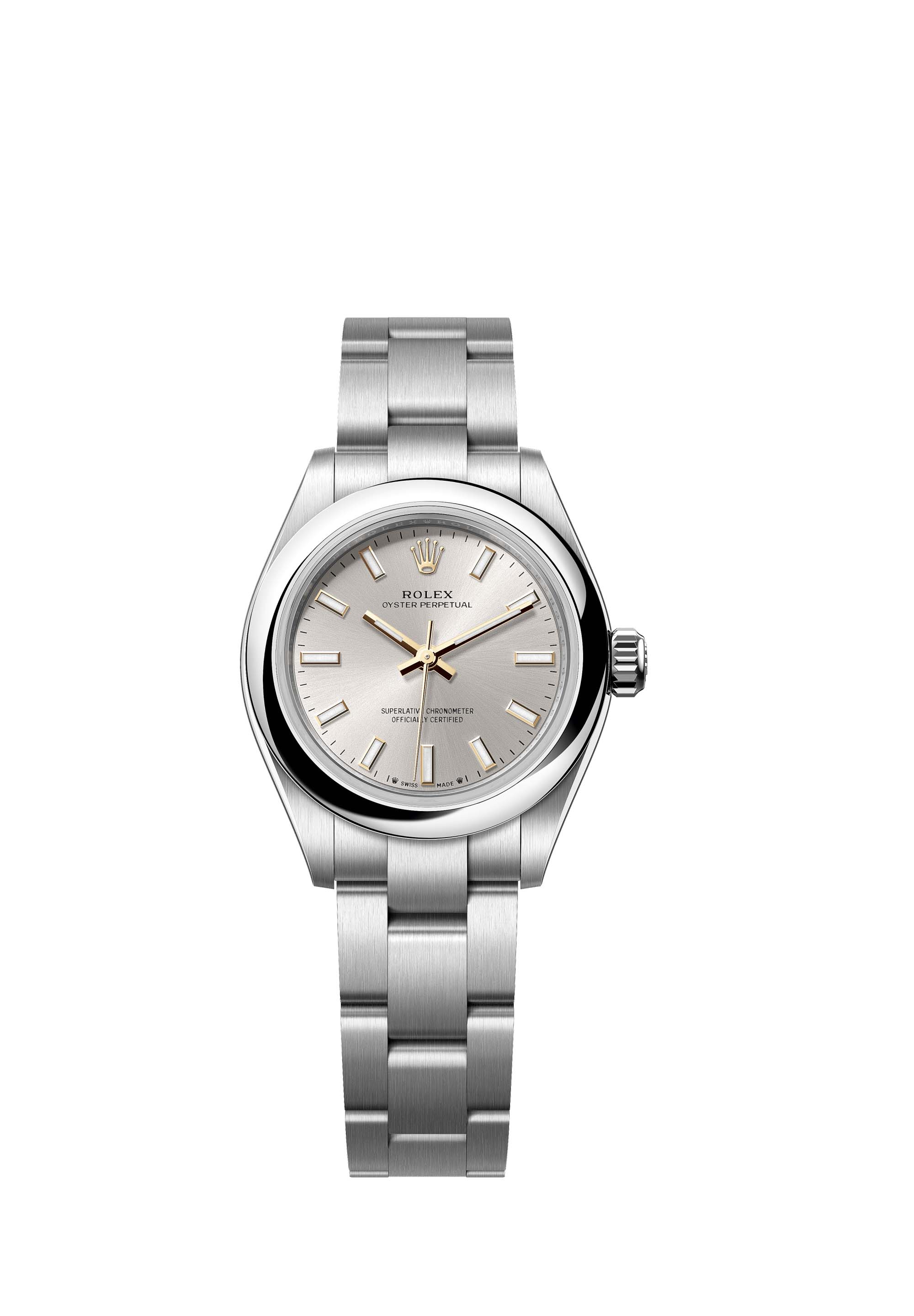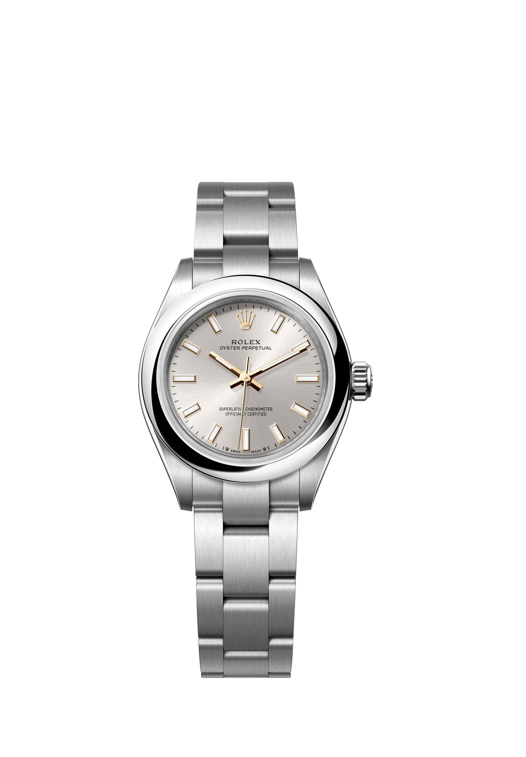 The Oyster Perpetual 28 with a silver dial and an Oyster bracelet.